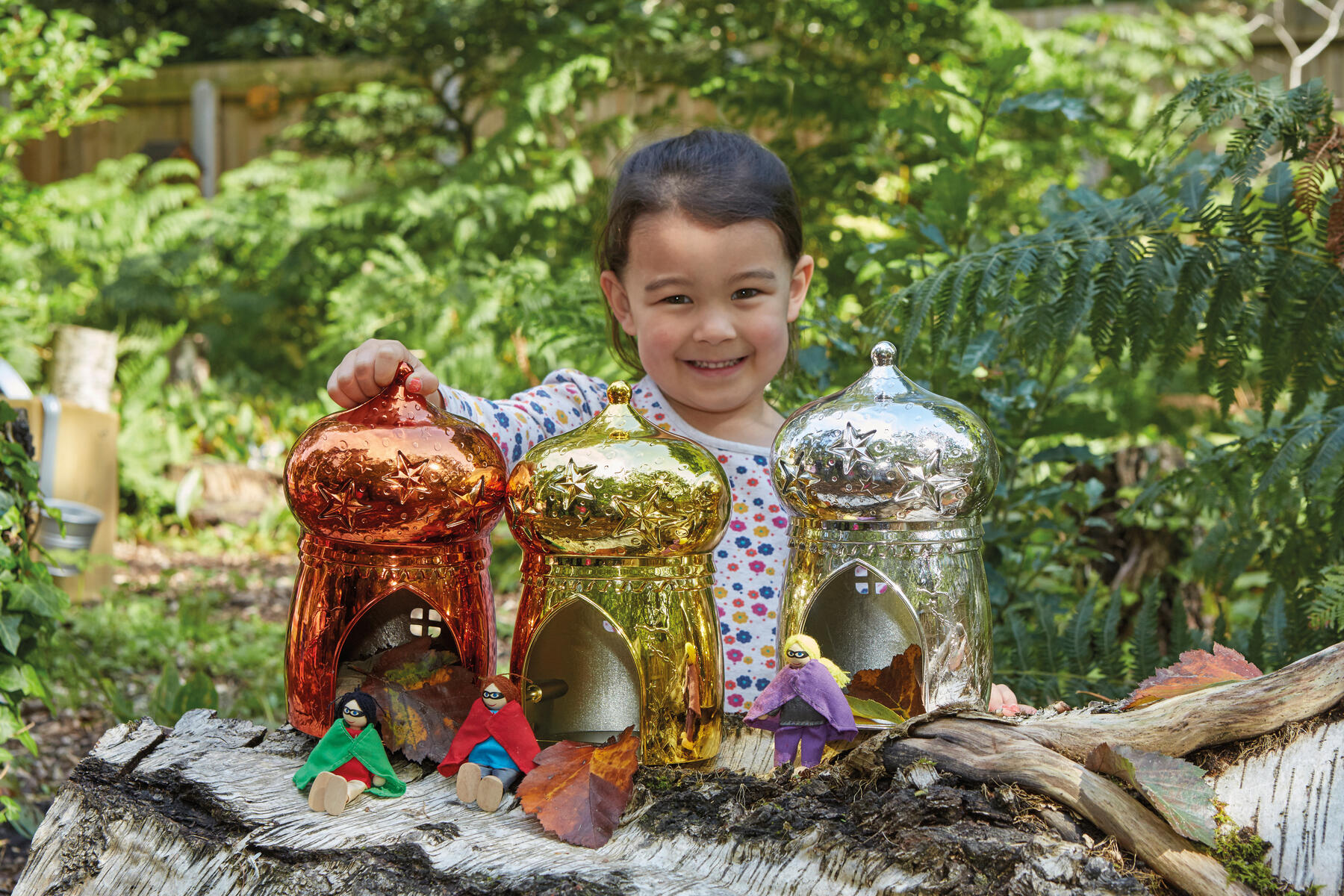 Skinande hus som blir underbara bostäder för magiska figurer som t.ex. älvor och feer. Kompletteras med löv, gräs, pinnar m.m. Används med fördel tillsammans mjuka produkter, då vassa föremål kan repa ytan. Av ABS. Tillbehör ingår ej. PVC-fri. Från 10 månader