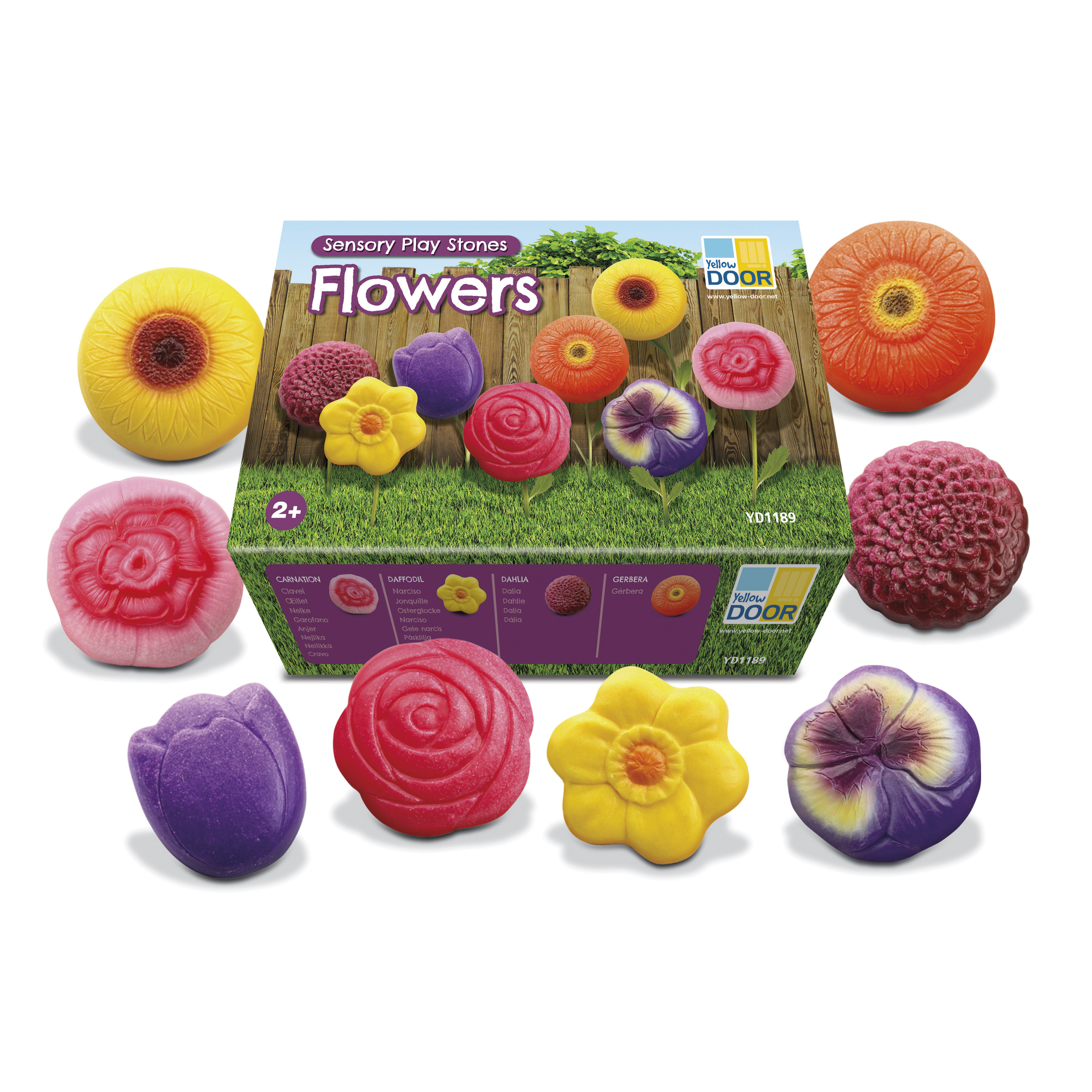 Set med realistiska blomhuvuden som låter barns fantasi och nyfikenhet blomstra. Tillverkade av sten, robusta nog att användas utomhus och är perfekta för lek i lerkök. Jämför med riktiga saker, öppna en blomsteraffär, skapa drycker eller plantera dem i jord. Innehåller 8 trädgårdsblommor: nejlika, påsklilja, dahlia, gerbera, pensé, ros, solros och tulpan. Varje sten mäter ca 5,5 cm. PVC-fri. Från 2 år.