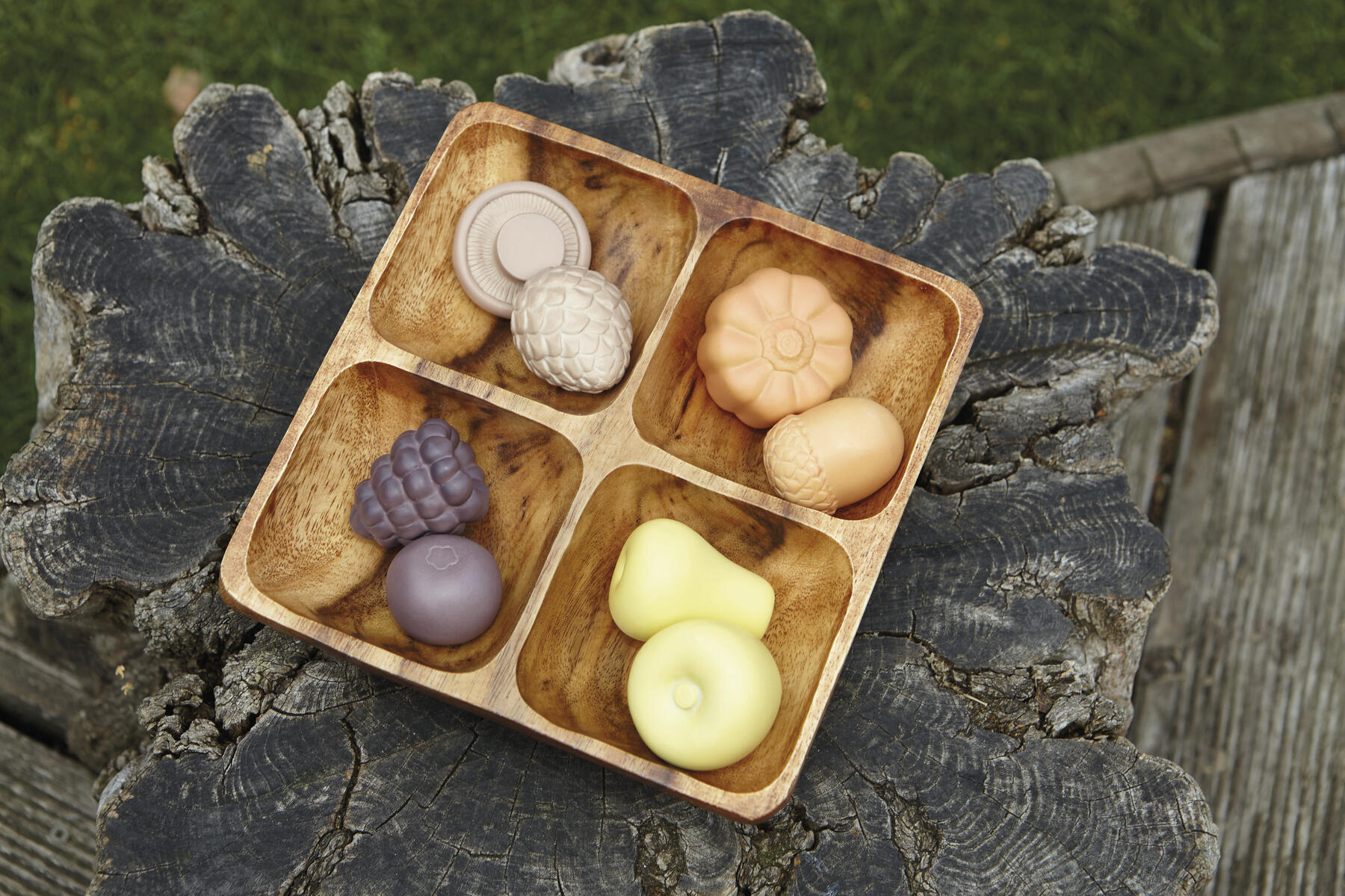 91 delar. Utforska naturen med detta set av svampar, löv, träflis, ekollon, pinnar, nyckelpigor och trästenar. Möjliggör öppen lek med aktiviteter som mönstertillverkning, färg- och formsortering, räkning och berättande. Bekvämt förpackad i en vackert målad träbricka. Av FSC-märkt trä. Från 3 år.