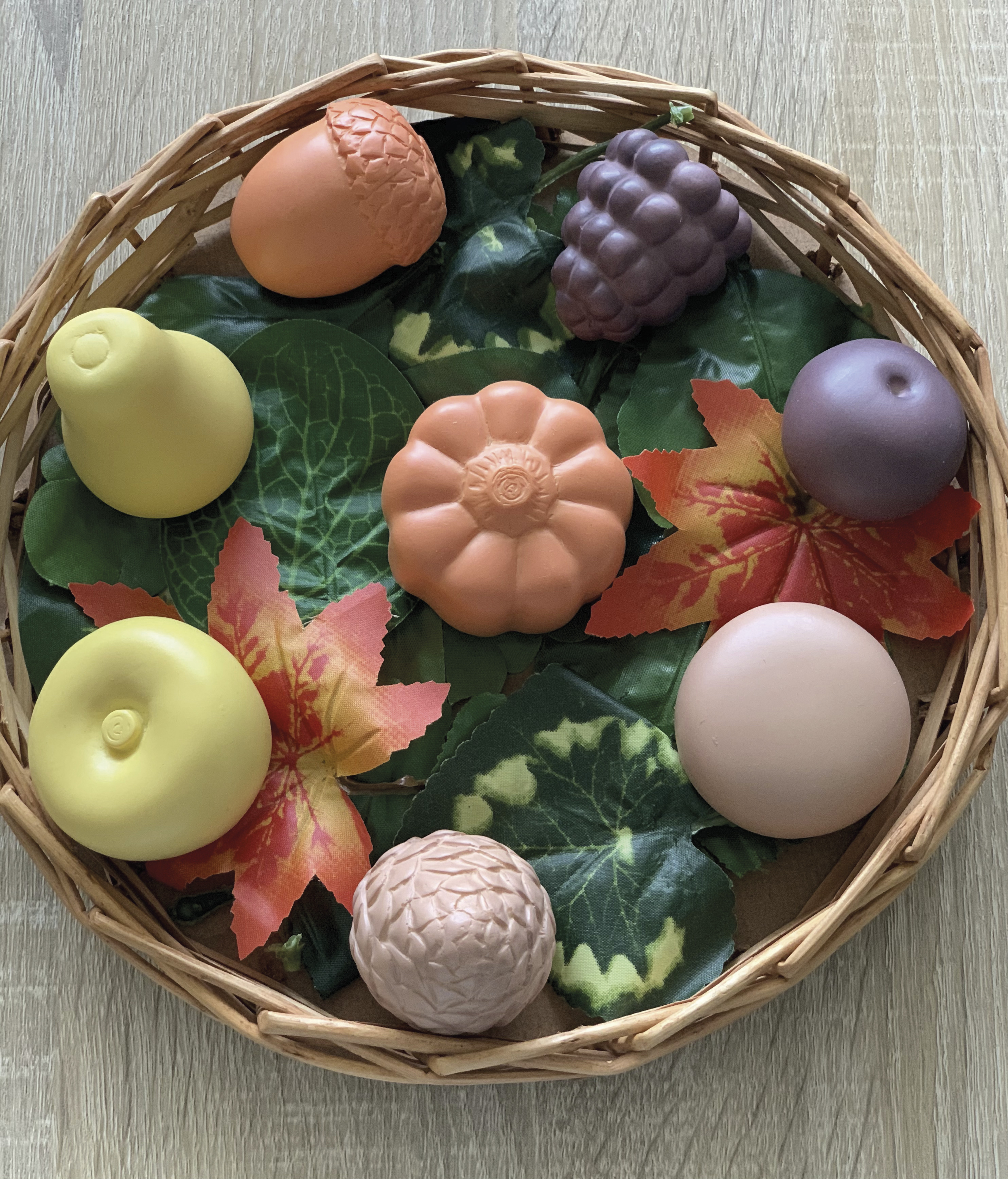 8 st/fp. Vackra, taktila stenar som visar naturens skatter. De passar allra bäst i naturen men fungerar bra inomhus också. Kan användas i vatten, lera, jord och i leklera och är lätta att rengöra. Detaljerna både känns och syns tydligt. Innehåller: ekollon, tallkotte, snäckskal, spindelnät, lönnlöv, lönnträdsfrö, fjäder, maskrosfrön. Mått: ca 80 mm. Av stenmaterial. PVC-fri. Från 2 år.