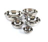 Robusta skålar för blandningar, hopkok och kladdig lek. Uppmuntra kreativiteten genom att ta med dem utomhus för sand- och vattenlek. Med fem olika storlekar passar skålarna även bra till förvaring och sortering. Kan staplas i varandra. Mått: Minsta skålen ø 16,5 cm (höjd 6 cm) och största skålen ø 40,5 cm (höjd 11,8 cm) . PVC-fri. Från 10 månader
