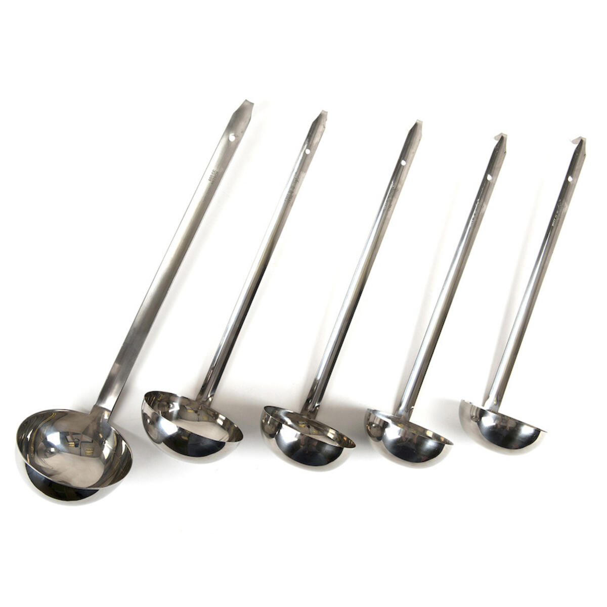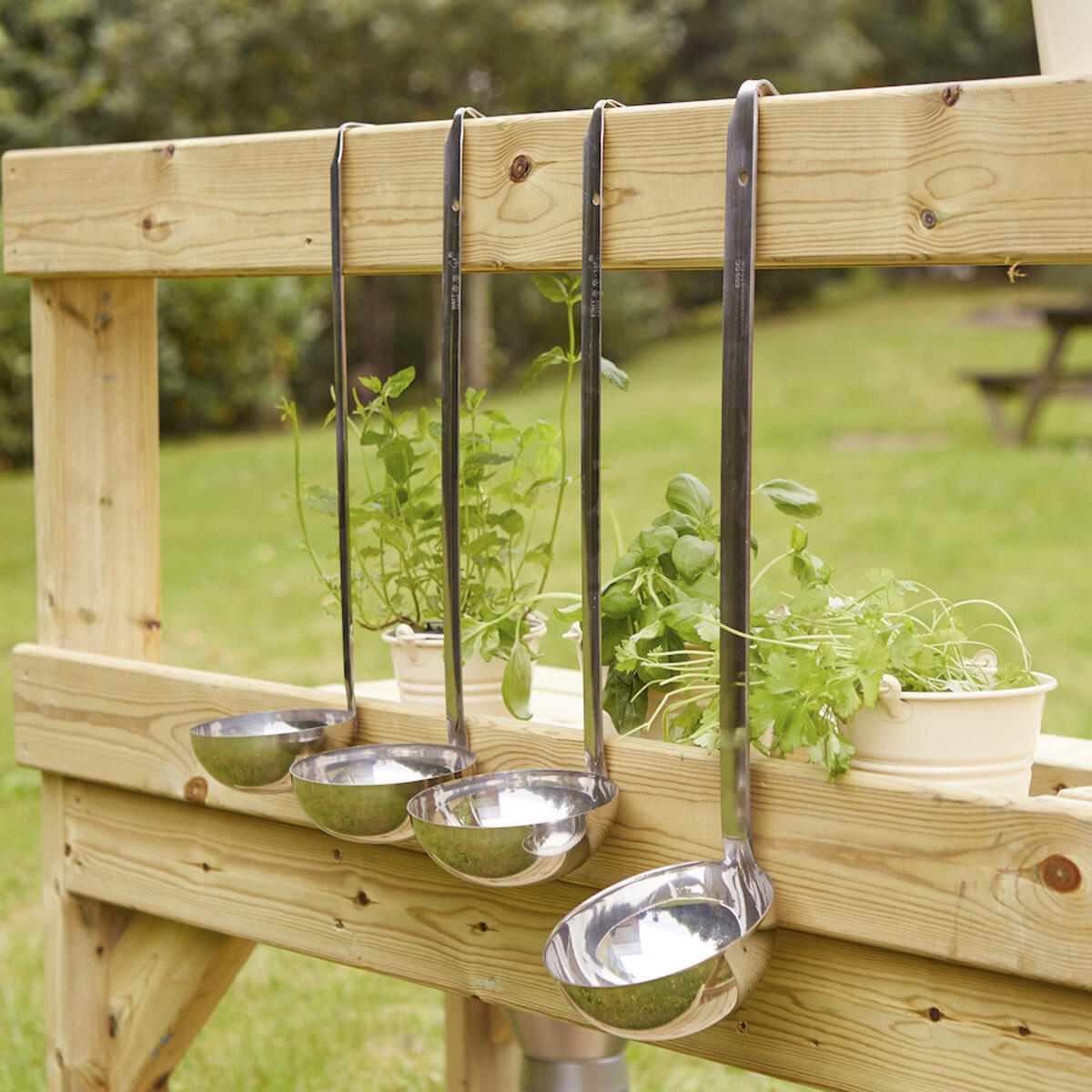 5 st/fp. Blanda och häll med dessa stora robusta slevar i metall. Uppmuntra kreativiteten genom att ta med dem utomhus för sand- och vattenlek. Bra som tillbehör till utomhusköket eller som rekvisita i rollekar. Den största soppsleven är 35 cm lång. PVC-fri. Från 3 år.