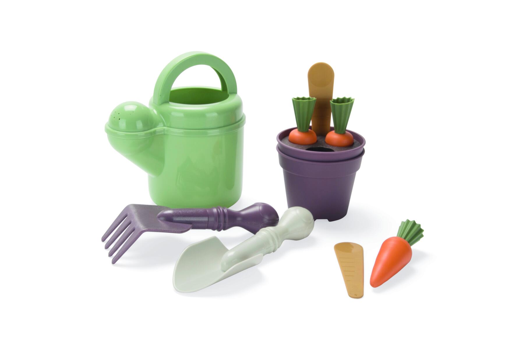 11 delar. Spaden används för att gräva i jorden, vattenkannan för att vattna de nysådda växterna och växtstöd för att komma ihåg vad man har sått. Mått: 29 x 19,5 x 11 cm. Av PP. PVC-fri. Tål maskindisk. Från 2 år. Svanenmärkt, licensnummer 50950001.
