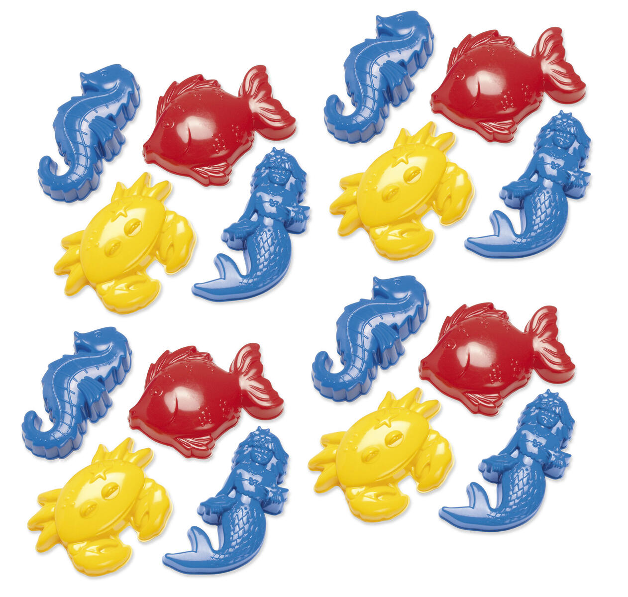8 st/fp. Gör upplevelsen i sandlådan färggladare och roligare med dessa fina sandformar. Då formarna föreställer sjöhästar, krabbor, fiskar och sjöjungfrur fungerar de perfekt som underlag till sagoberättande eller samtal/teman om havet. Vilka bor i havet? Vilka färger har de? Vad gör de? Genom detta övar barnen upp både finmotoriken, samspelet, kommunikationen och fantasin. Sandformarna, som är i starka och klara färger, kan användas i sandlek både utomhus och inomhus. Formarna är frosttåliga och kan användas för att göra både snö- och isskulpturer. Man kan även använda dem som ritmallar. Av PE och PP. Svanenmärkt licensnummer 50950001. Mått: 10-17 cm. PVC-fri. Från 2 år.