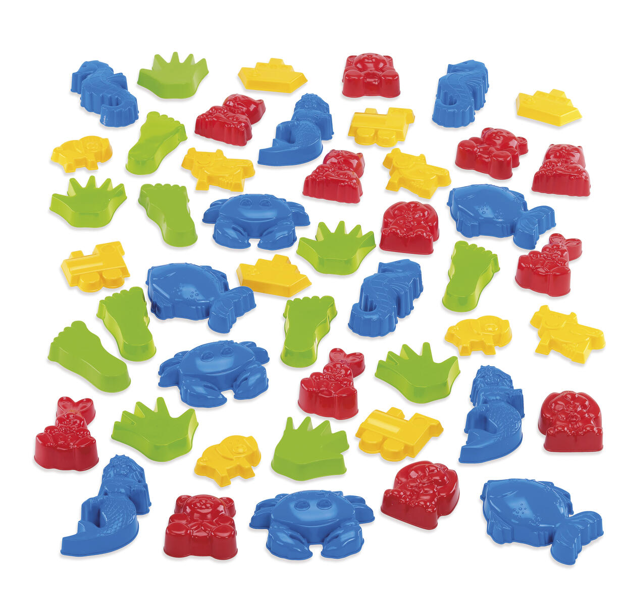 En stor förpackning med sandformar för kreativt skapande i sandlådan. Innehåller olika former och färger, t.ex. bondgårdsdjur och vattendjur. Av livsmedelsgodkänd PE som tål frost. Mått på t.ex. anka 9x9 cm, glass 20x12 cm. Svanenmärkt, licensnummer 50950001. PVC-fri. Från 2 år.