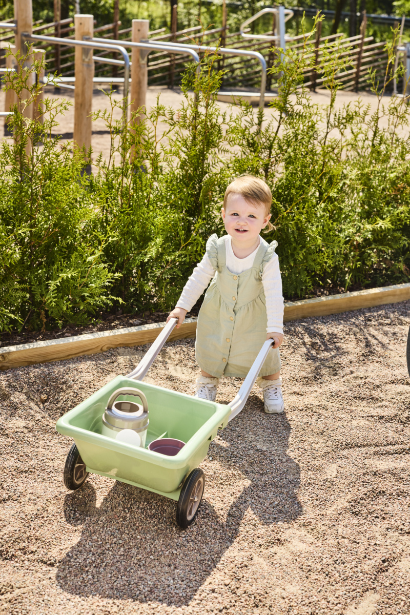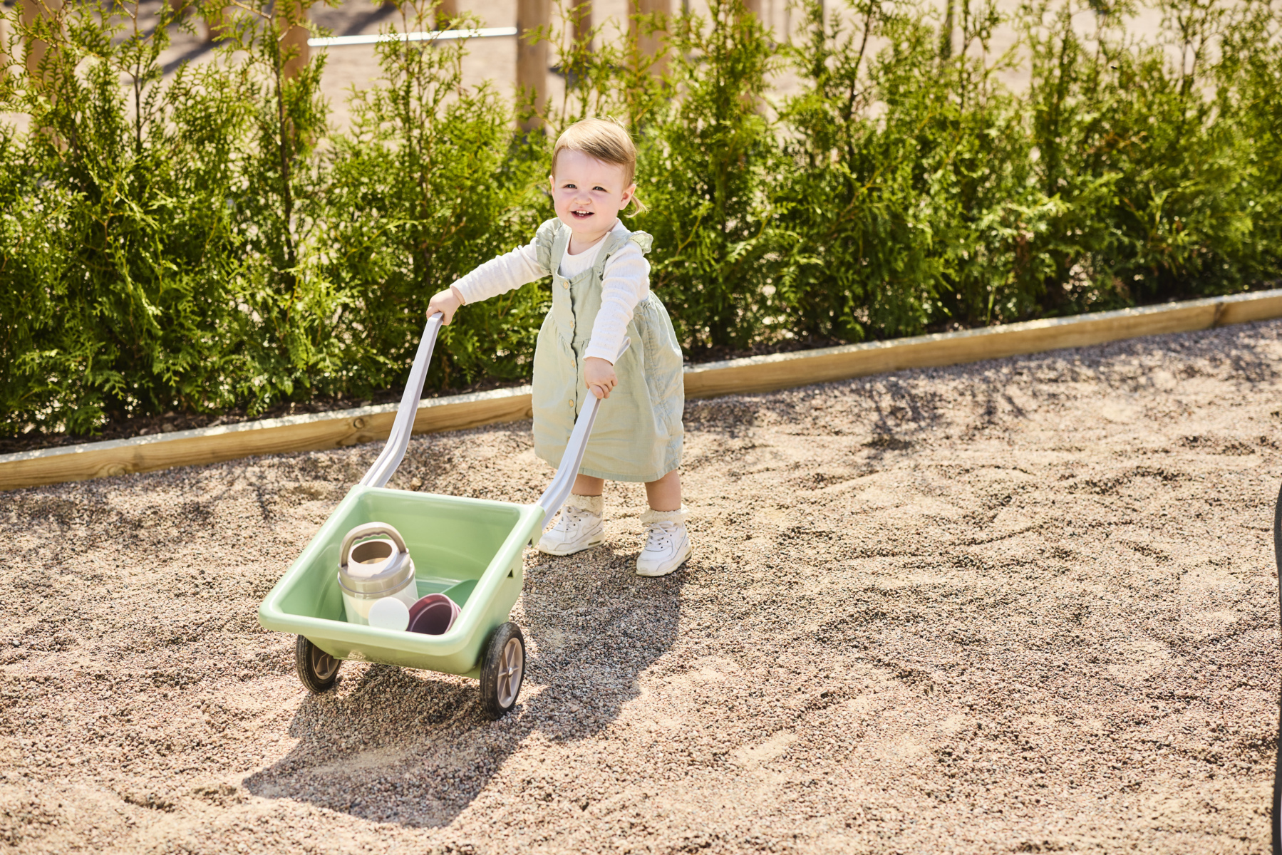 11 delar. Spaden används för att gräva i jorden, vattenkannan för att vattna de nysådda växterna och växtstöd för att komma ihåg vad man har sått. Mått: 29 x 19,5 x 11 cm. Av PP. PVC-fri. Tål maskindisk. Från 2 år. Svanenmärkt, licensnummer 50950001.
