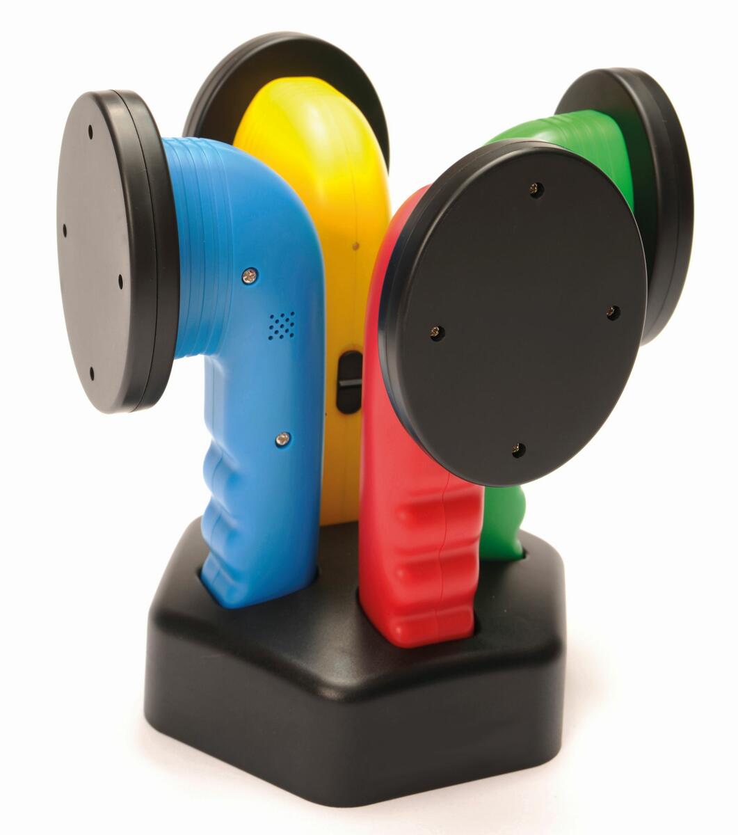 Undersök omgivningen med vårt set om 4 uppladdningsbara metalldetektorer. Dessa innovativa detektorer är enkla att använda – svep med dem över ett område så hörs det ett pip när de upptäcker metall. Använd den inomhus, exempel för att leka flygplatskontroll. Den medföljande laddningsstationen laddar alla 4 detektorer samtidigt. En uppladdning klarar ca 8 h lek. Mått: 20x8 cm. PVC-fri. Från 3 år.