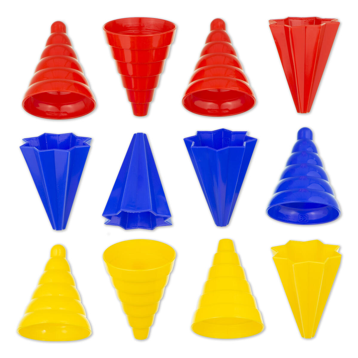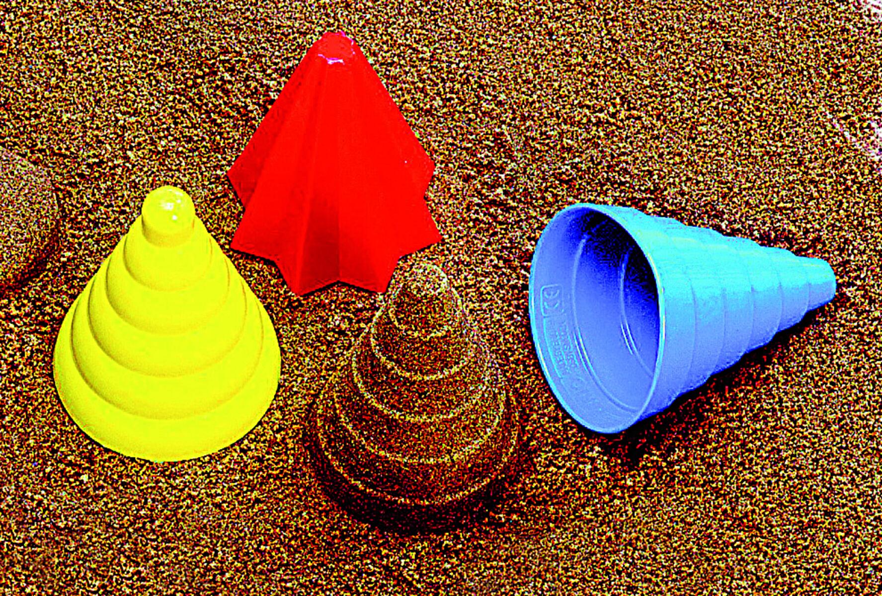 Stora sandformar att bygga borgar med. 4 sandformar och 2 spadar. Mått: 15x15x19 cm. Tål frost. Av PE. Svanenmärkt, licensnummer 50950001.PVC-fri. Från 2 år.