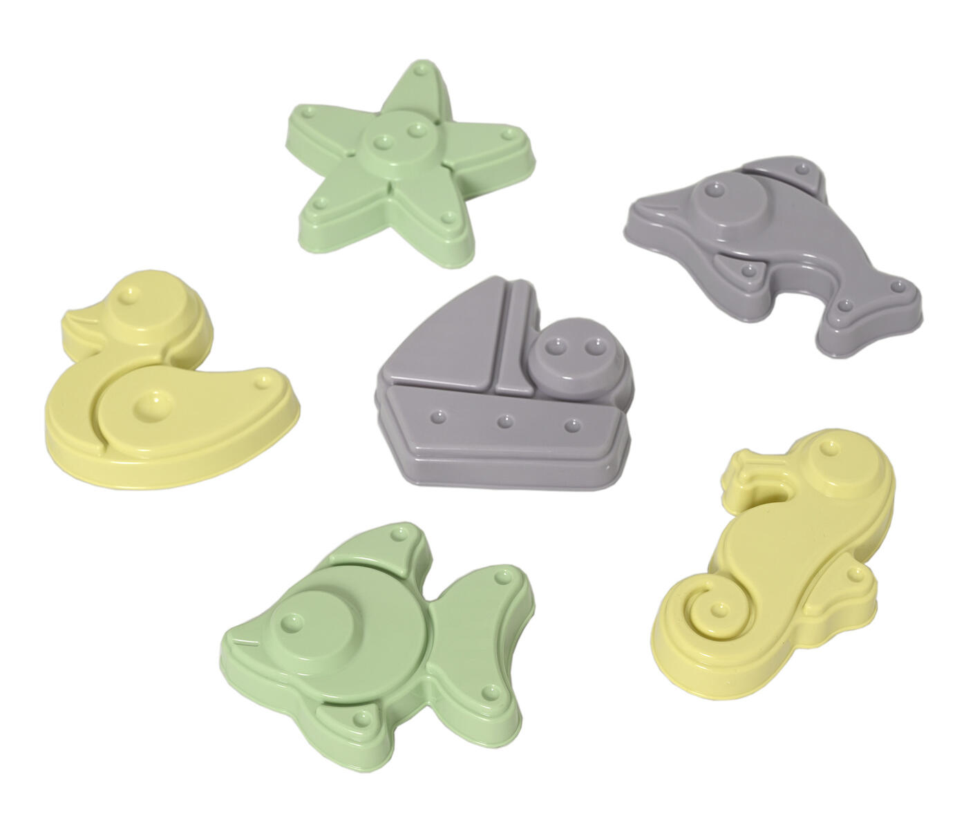 8 st/fp. Gör upplevelsen i sandlådan färggladare och roligare med dessa fina sandformar. Då formarna föreställer sjöhästar, krabbor, fiskar och sjöjungfrur fungerar de perfekt som underlag till sagoberättande eller samtal/teman om havet. Vilka bor i havet? Vilka färger har de? Vad gör de? Genom detta övar barnen upp både finmotoriken, samspelet, kommunikationen och fantasin. Sandformarna, som är i starka och klara färger, kan användas i sandlek både utomhus och inomhus. Formarna är frosttåliga och kan användas för att göra både snö- och isskulpturer. Man kan även använda dem som ritmallar. Av PE och PP. Svanenmärkt licensnummer 50950001. Mått: 10-17 cm. PVC-fri. Från 2 år.