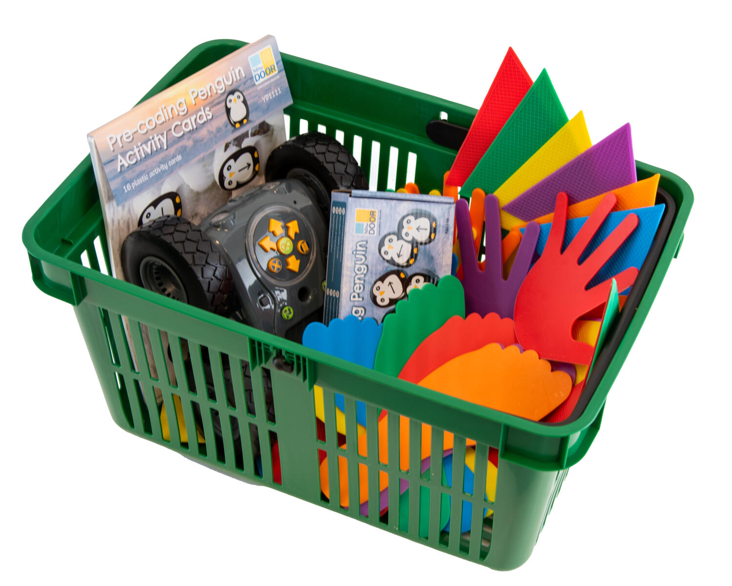 1 kit/fp. Ett paket som hjälper till att flytta ut verksamheten. Framtaget tillsammans med en pedagog. Innehåller: 112894 Rugged robot, 141550 Markeringsplattor händer & fötter, 2 x 140363 Markeringsplattor pilar, 118604 Pingvinens kodningsstenar, 118605 Pingvinens aktivitetskort och 124579-38 förvaringskorg grön. Förflytta korgen enkelt med hjälp av artikel 124580, Vagn till förvaringskorg.