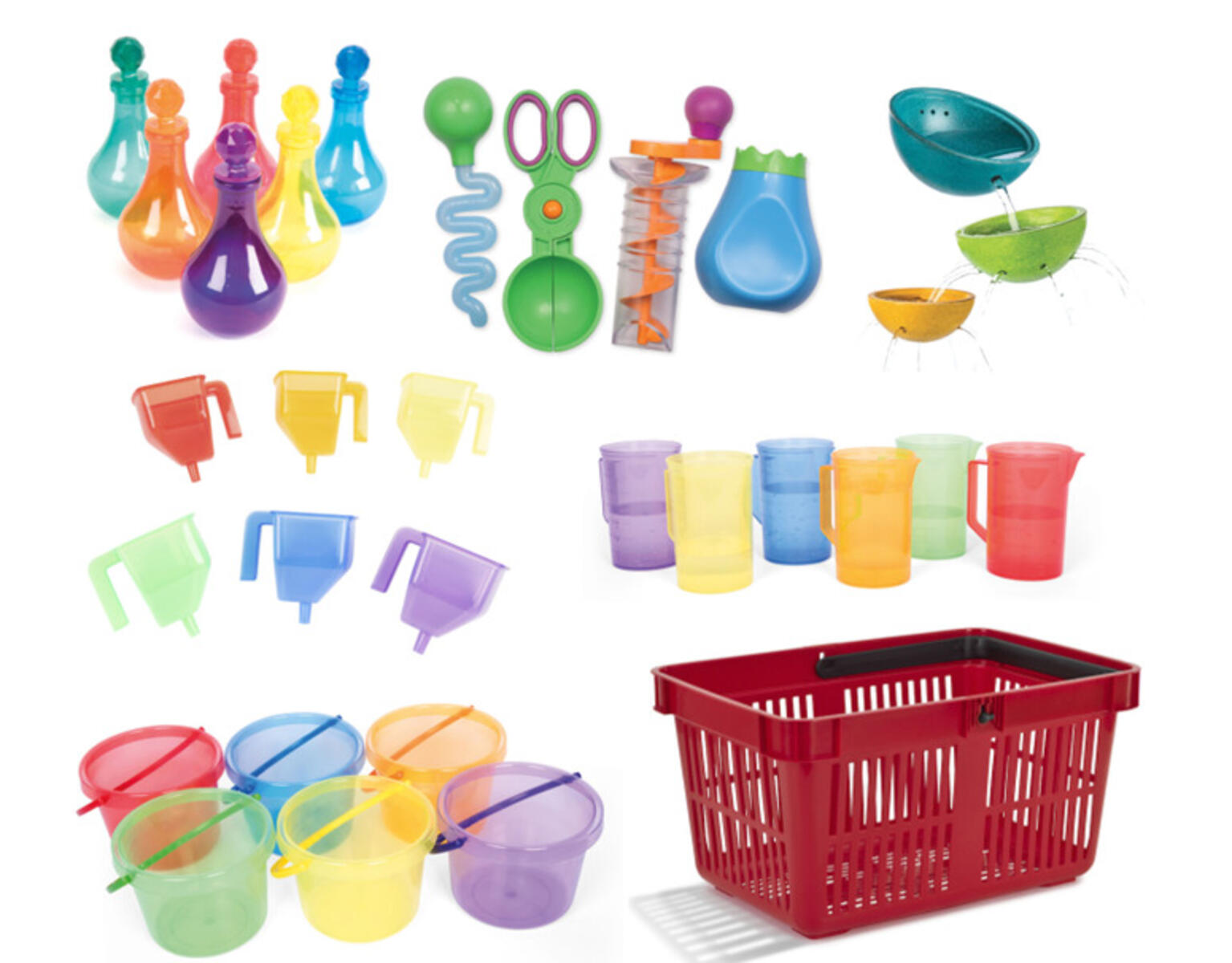 32 delar. Ett paket som hjälper till att flytta ut verksamheten. Framtaget tillsammans med en pedagog. Innehåller: 13618 Sand- och vattenlek 4 st, 13602 Fontänskålar 3 st, 13620 Färgade bägare 6 st, 13621 Färgade hinkar 6 st, 13125 Magiska plastflaskor 6 st och 129905 Vattentrattskopa, 6 färger . 124579-12 Förvaringskorg Röd,1 st . Förflytta korgen enkelt med hjälp av artnr 124580, Vagn till förvaringskorg.