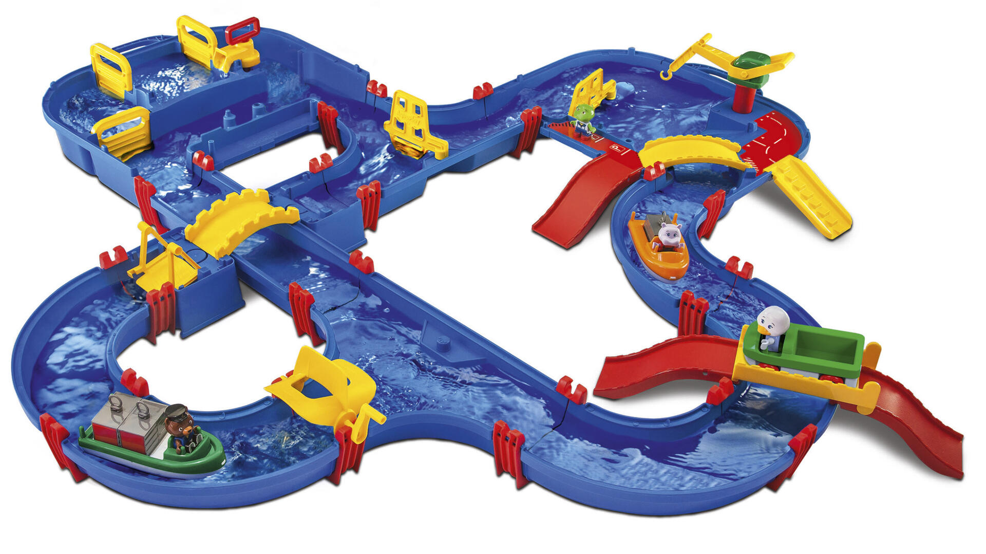 79 delar. Ett roligt kanalsystem som innehåller en massa olika lekstationer, inklusive en lyftkran, slussar, broar och ramper. Detta är ett kreativt och lekfullt sätt att lära sig hur vatten rör sig. Med setet följer också en containerbåt, en transportbåt och ett amfibiefordon samt figurerna Bo, Wilma, Lotta och Nils. Hopfällbar och lätt att förvara. Mått: 156 x 145 x 22 cm. Av PP och PE. PVC-fri. Från 3 år.