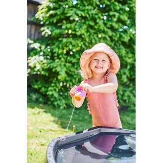 Ett smart system för roliga aktiviteter med vatten och sand. I detta set ingår en transparent balja med lock, en hopfällbar ställning med 2 hjul och en aktivitetsbricka för att öka lekvärdet. Baljan är utrustad med kran för enkel urtappning av vatten. Av SBC och PP. PVC-fri. Från 18 mån.