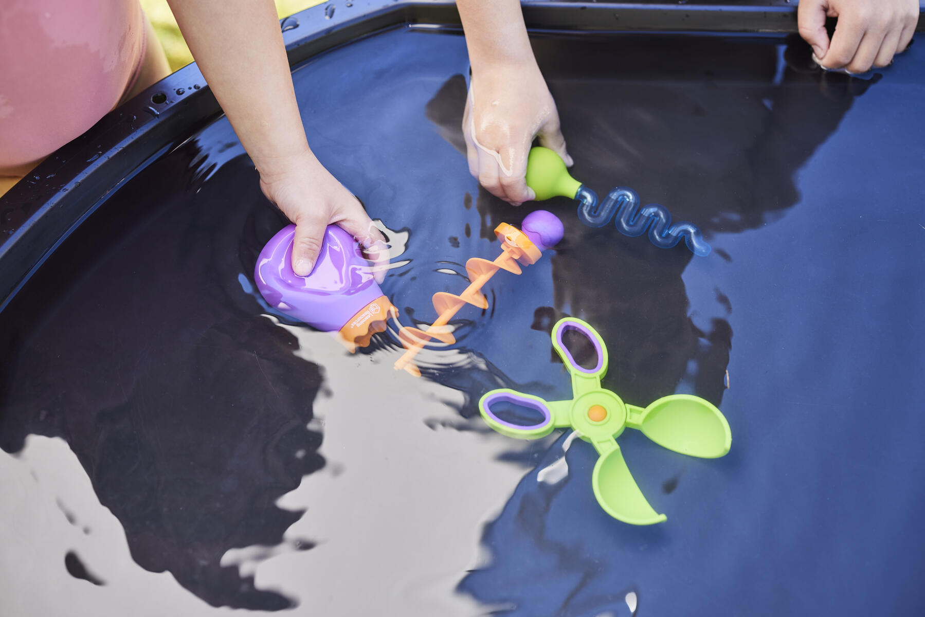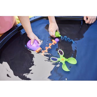 Roliga vattenredskap för att experimentera med vatten. Uppmuntrar till att utveckla finmotoriska färdigheter. Innehåller mjuk flaska, vågformad droppipett, öppningsbar skopa och vattenborr. Av ABS och PP. PVC-fri. Från 3 år.