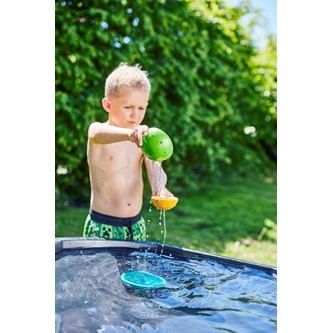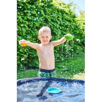 Roliga vattenredskap för att experimentera med vatten. Uppmuntrar till att utveckla finmotoriska färdigheter. Innehåller mjuk flaska, vågformad droppipett, öppningsbar skopa och vattenborr. Av ABS och PP. PVC-fri. Från 3 år.
