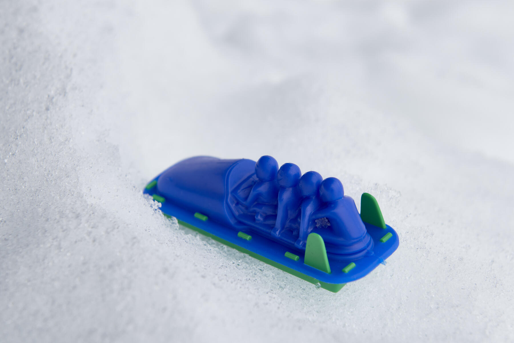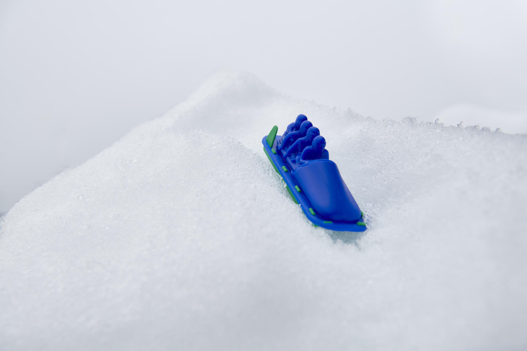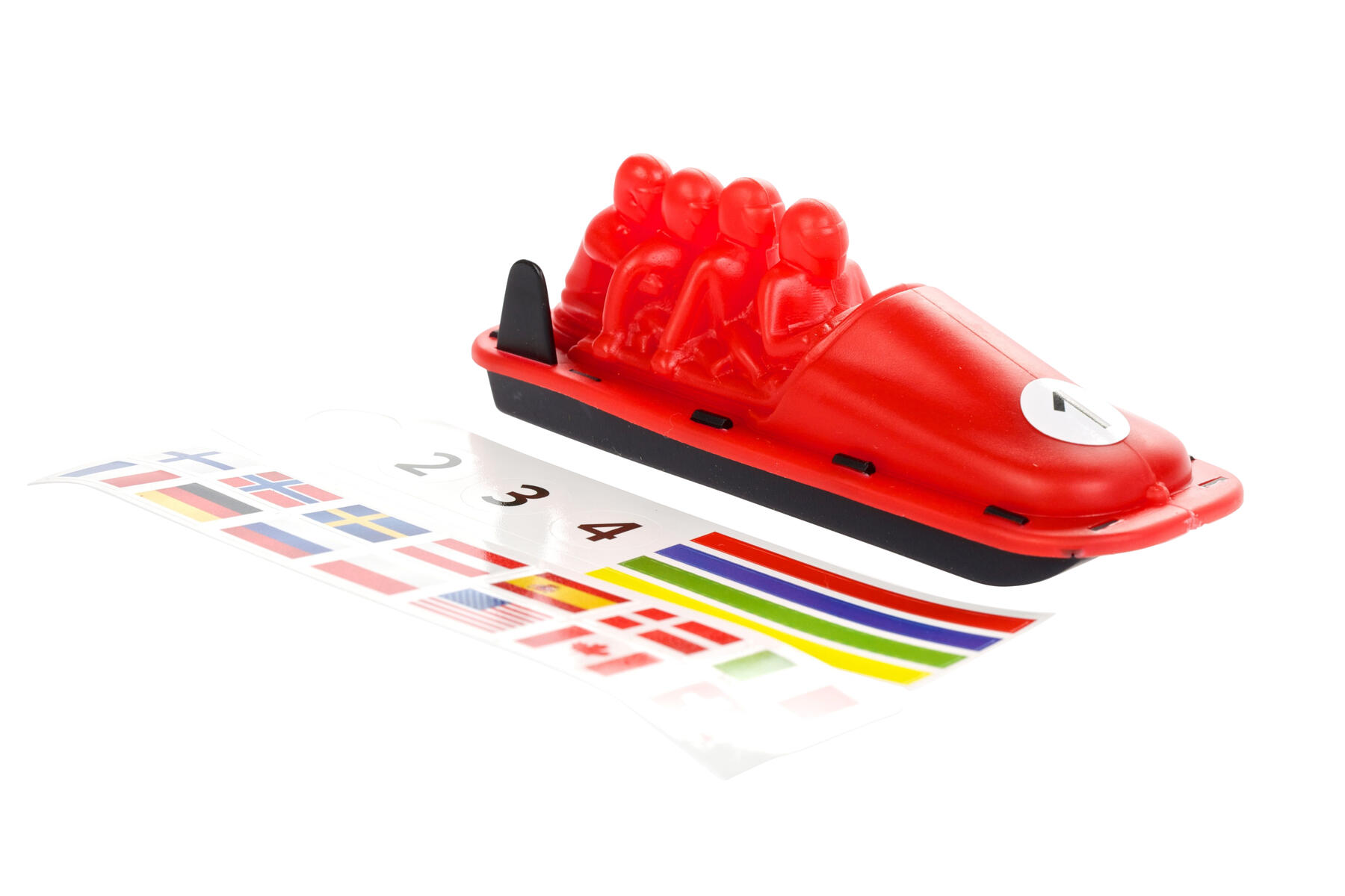 Bygg en 150 cm lång bana i snön med kurvor, backar och hopp. Låt barnen putta sin bob runt i tur och ordning. När alla barn puttat första varvet börjar man på nästa. Den som har ledningen börjar och först i mål vinner. Längd 10 cm. Av HDPE. PVC-fri. Från 3 år.