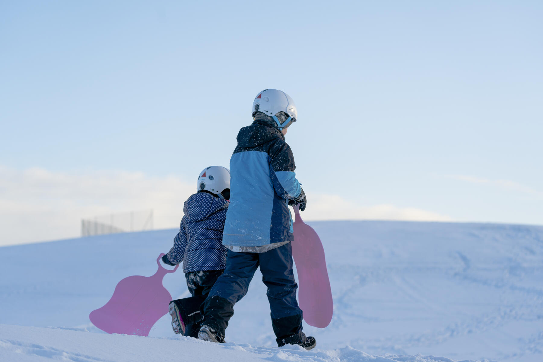 Åkmadrass med plats för två personer. Tillverkad i slitstarkt material och som glider bra. Mjuk och bekväm att sitta på samt lätt att bära. Olika färger. Storlek L120xB50x5 cm. Av PVC utan förbjudna ftalater, polyuretan och polypropen. Från 3 år.