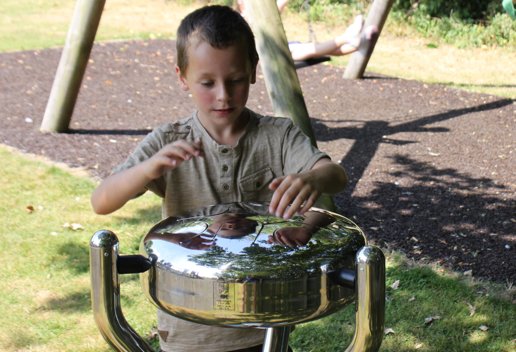 Liten handtrumma i rostfritt stål. 6 olika toner.