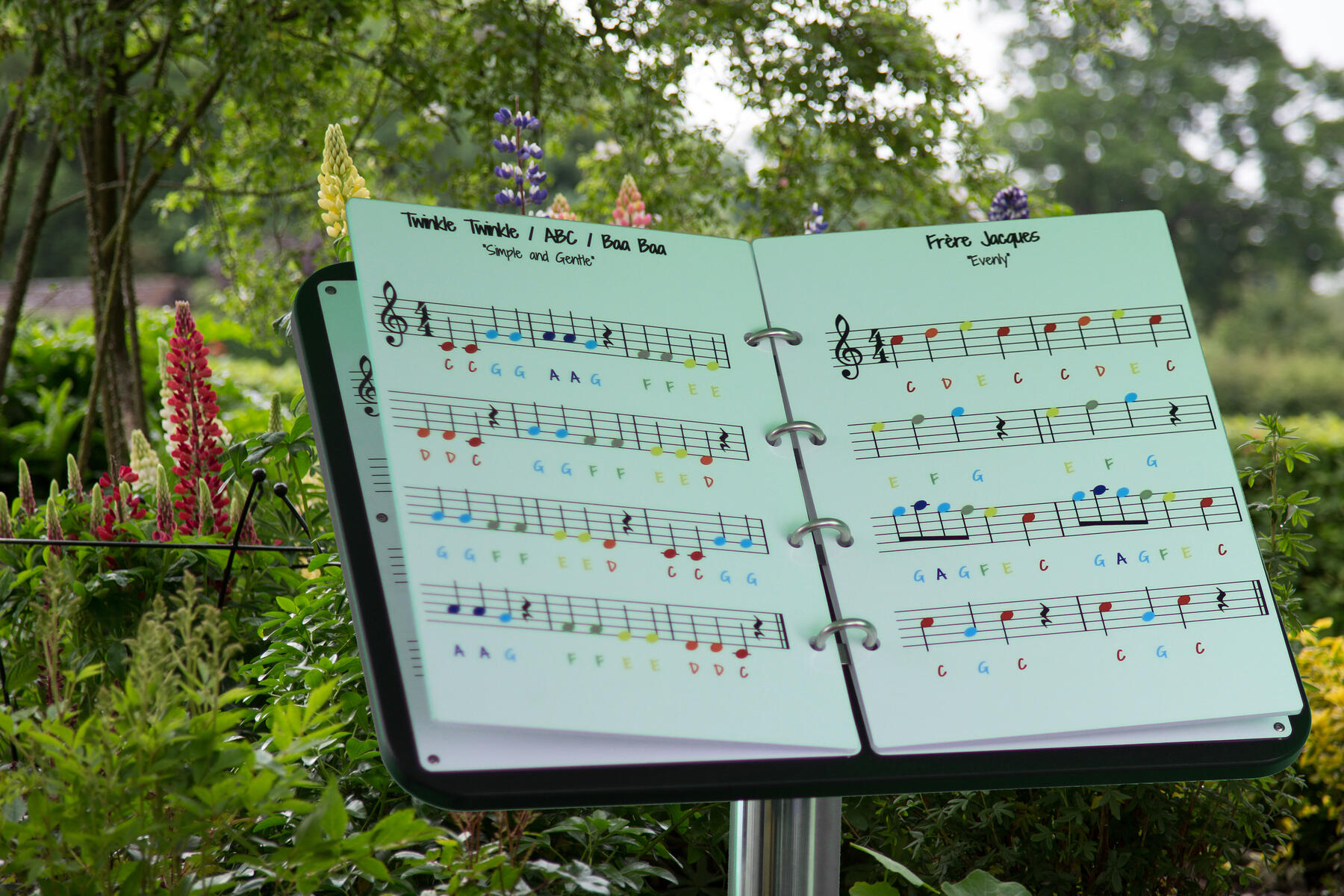 Tre par congas för utomhusbruk. Monterade på stolpe av rostfritt stål. Trumskinn av slitstark ABS.