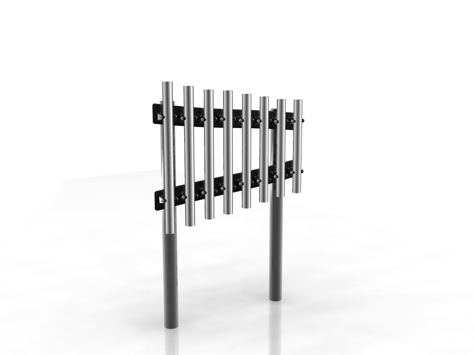 Tre par congas för utomhusbruk. Monterade på stolpe av rostfritt stål. Trumskinn av slitstark ABS.