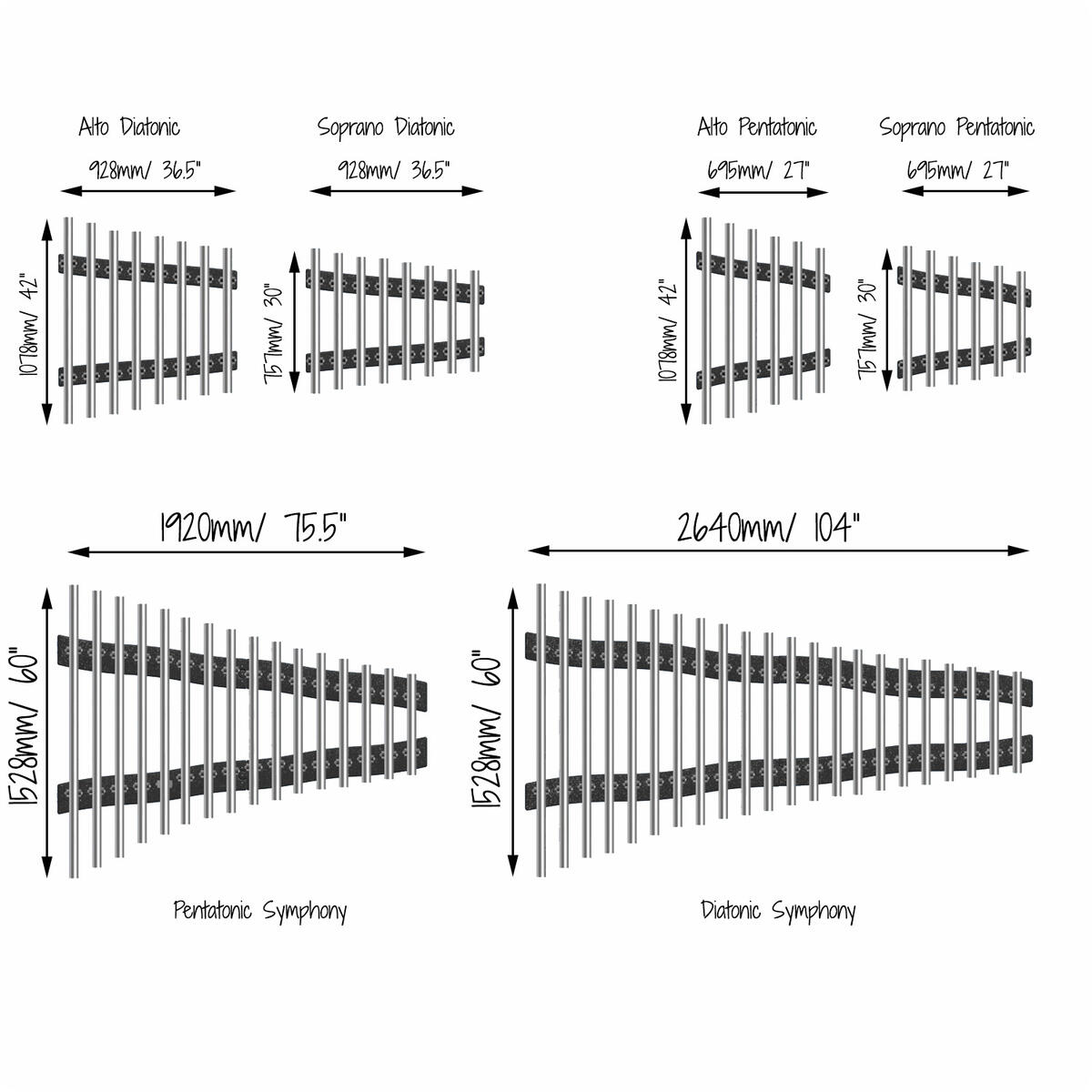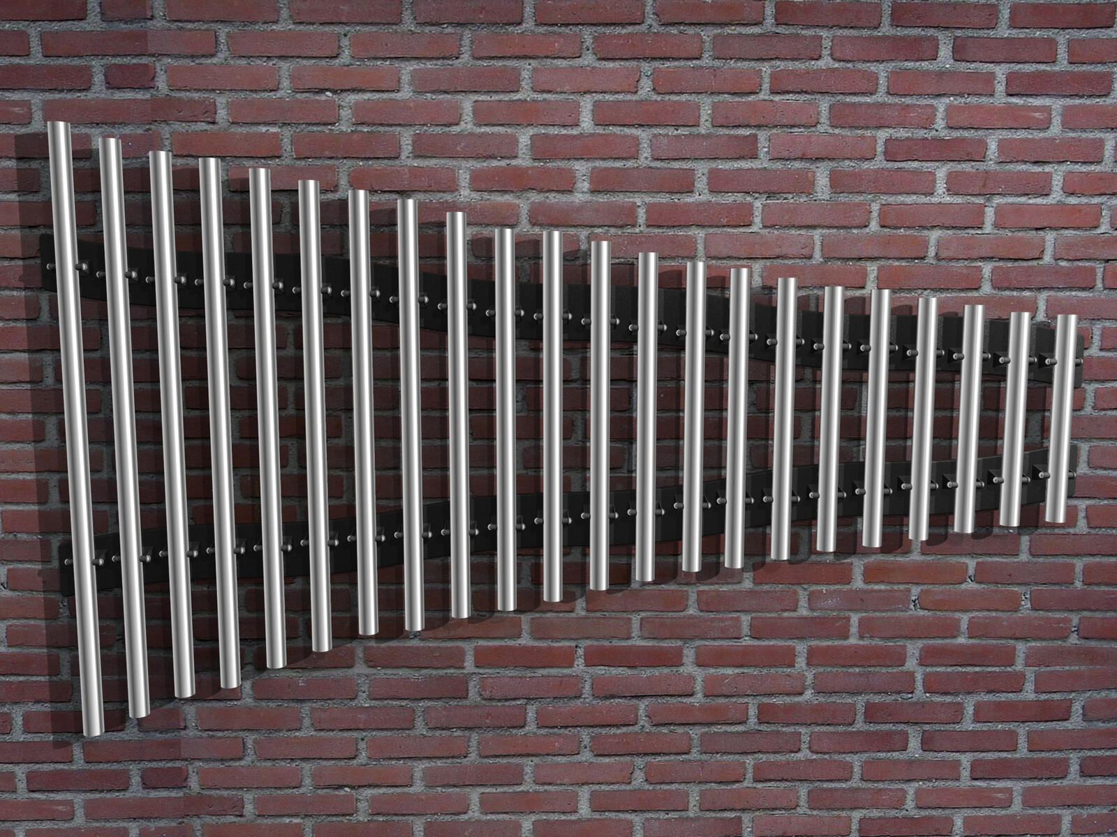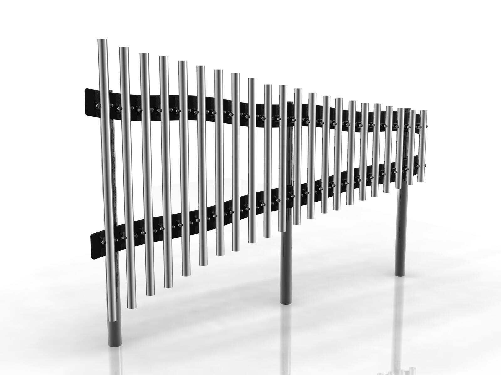 Vertikalt klockspel med 11 stämda aluminiumrör.