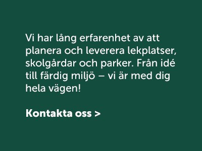 Här hittar du lekplatsutrustning framtagen för offentliga miljöer och deras stränga krav. Vi utformar och installerar lekplatser oavsett storlek för skolor, förskolor och parker. Välj bland gungor, rutschkanor, klätterställningar, utemöbler, utegym och solsegel. Med fokus på säkerhet, hållbarhet och högt lekvärde skapar vi miljöer som uppmuntrar rörelse, samspel och lärande. Oavsett om du är landskapsarkitekt, rektor, kommunanställd eller lärare får du rådgivning, helhetslösningar och projektstöd från start till mål. Med erfarenhet och fokus på kvalitet skapar vi inspirerande utemiljöer!