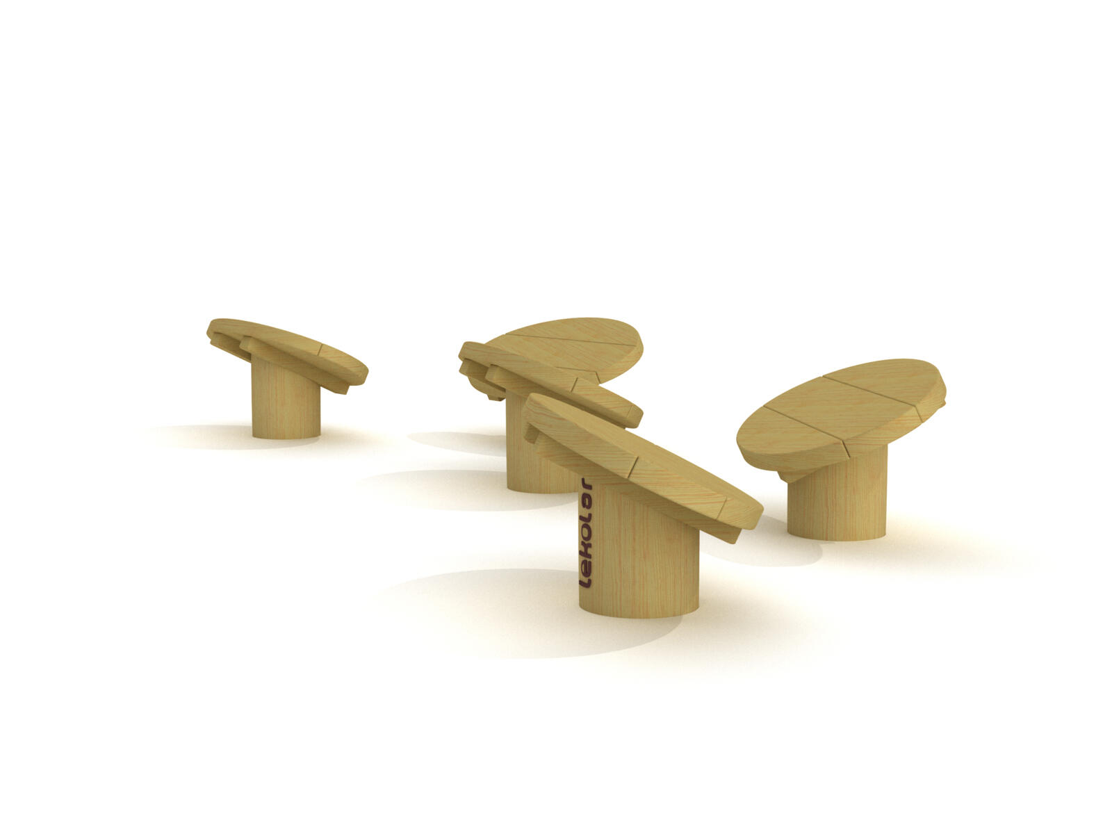 Flexibla balansbrädor som inspirerar till rörelse och bidrar till möjligheten att skapa en föränderlig utemiljö. Barnen kan bygga egna balansbanor och då forma miljön själva, eller samarbeta och konstruera i grupp. Tillsammans med scenmodulerna kan de bilda varierande topografi och svårighetsgrad. Levereras färdigmonterad.