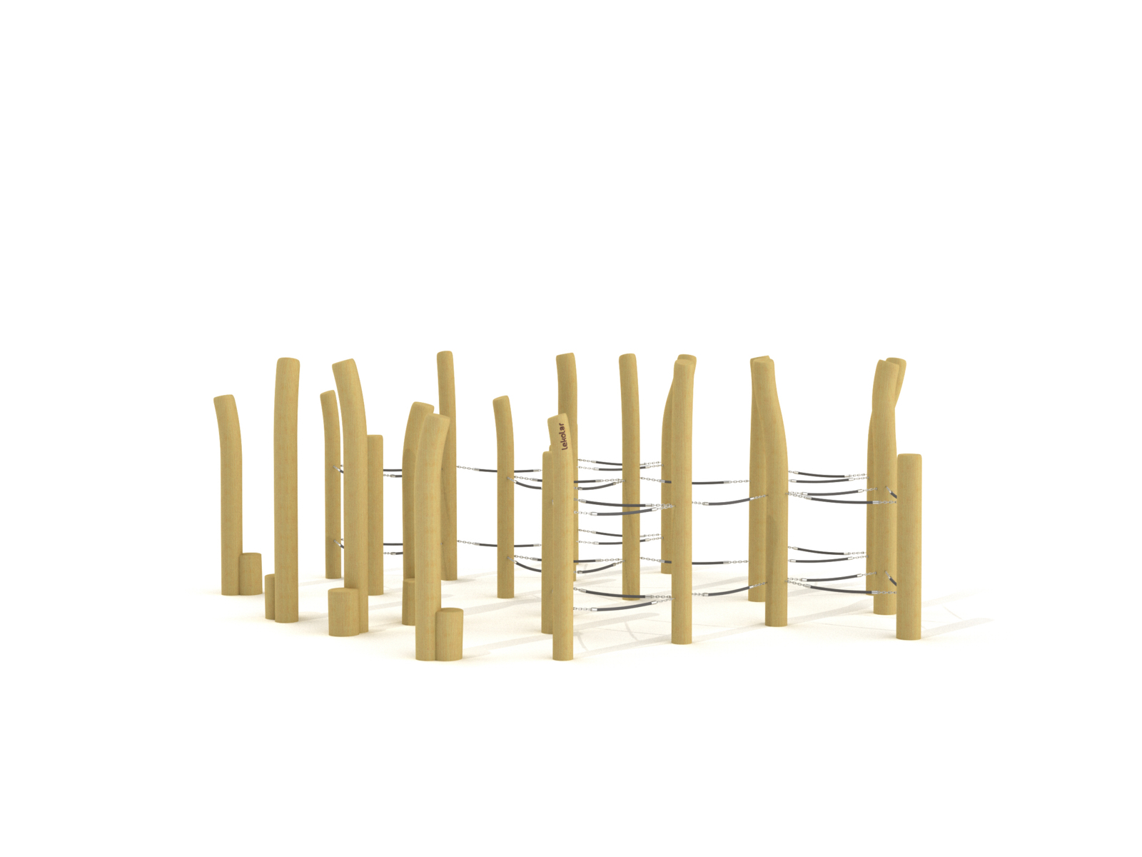 Robinia smälter fint in i utemiljön och ger ett mjukt och naturligt intryck. Denna stora skogsliknande balansbana med rep, balansstubbar och stolpar kräver både koordination och kroppsmedvetenhet. Balansskogen är idealisk som en del av hinderbanan, men kan även fungera utmärkt på lekplatsen som en fristående aktivitet. Tillverkad av FSC-certifierad Robinia, ett träslag med hög motståndskraft mot väderpåverkan. Det har förmågan att absorbera minimalt med vatten och utmärker sig genom sin extremt långa hållbarhet. Monteras enligt installationsmanual.