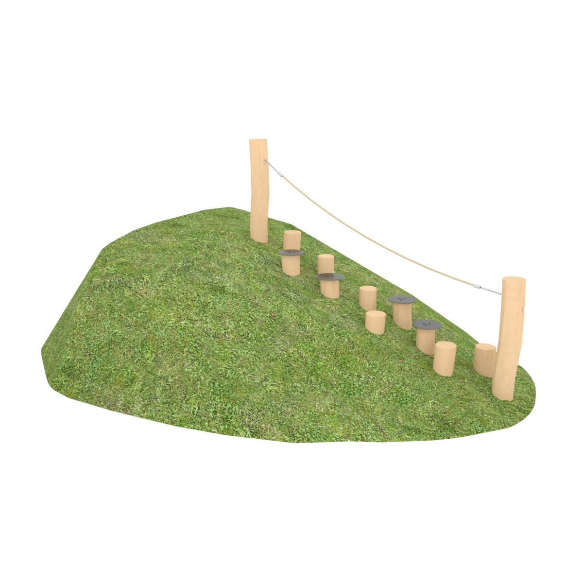 Robinia smälter fint in i utemiljön och ger ett mjukt och naturligt intryck. När barnen tar sig fram längs den balanserande gången utmanas barnens balans, koordination och kroppsmedvetenhet. Balansstubbarna slingrar sig fram mellan stolparna i varierande höjd. Stubbgången är idealisk som en del av hinderbanan, men kan även fungera utmärkt på lekplatsen som en fristående aktivitet. Tillverkad av FSC-certifierad Robinia, ett träslag med hög motståndskraft mot väderpåverkan. Det har förmågan att absorbera minimalt med vatten och utmärker sig genom sin extremt långa hållbarhet. Monteras enligt installationsmanual.
