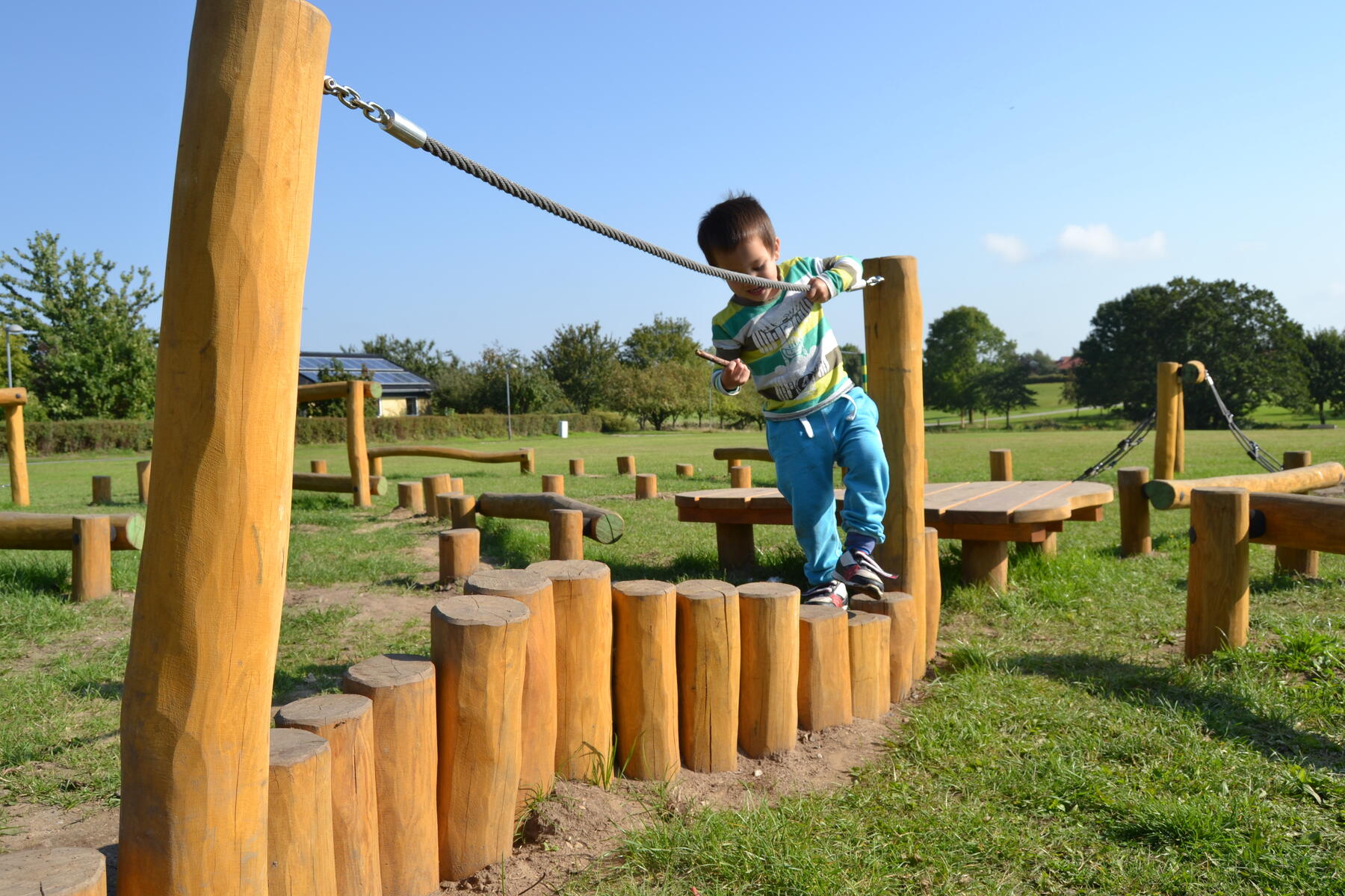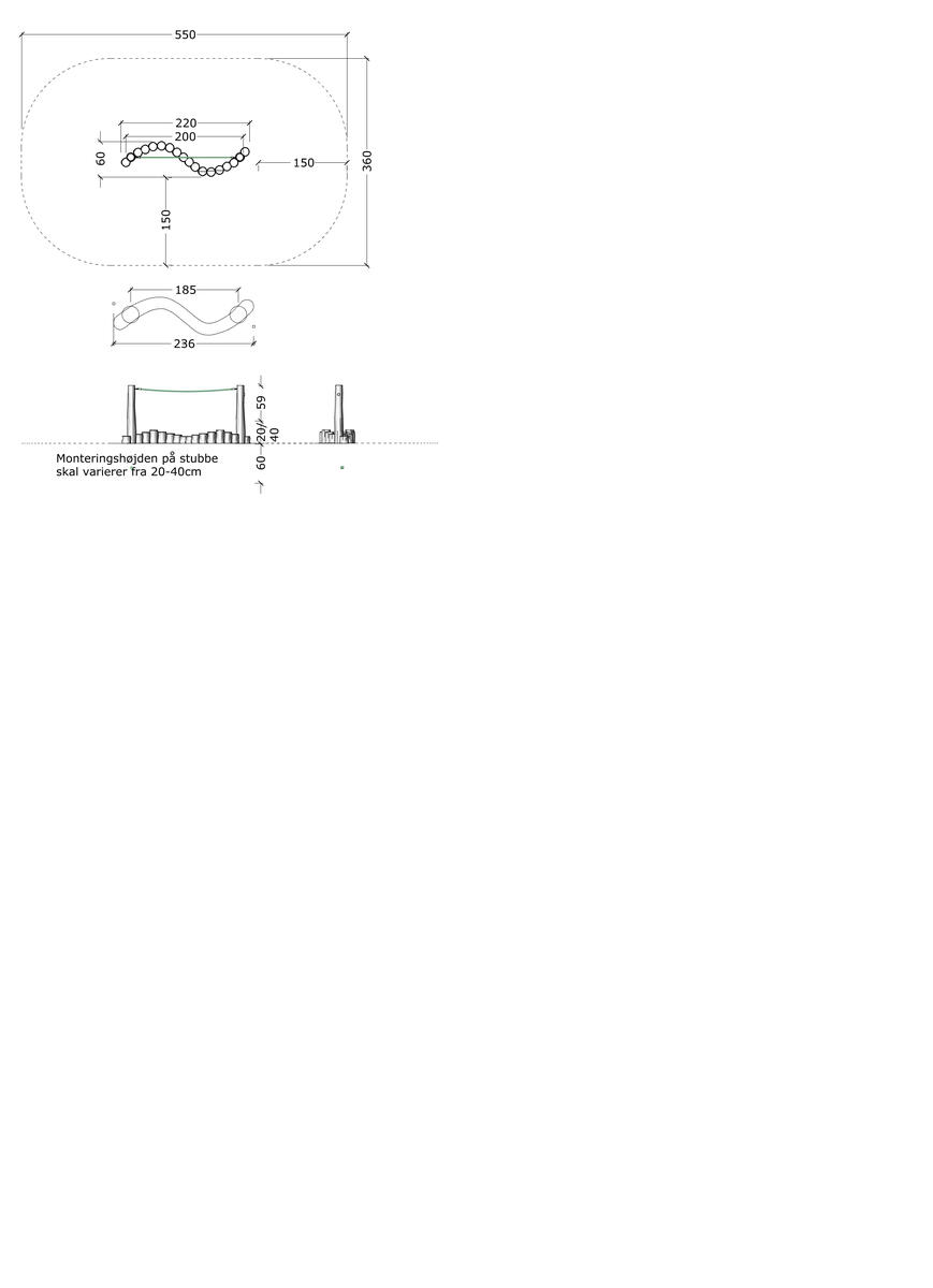 Robinia smälter fint in i utemiljön och ger ett mjukt och naturligt intryck. När barnen tar sig fram längs den balanserande gången utmanas barnens balans, koordination och kroppsmedvetenhet. Balansstubbarna slingrar sig fram mellan stolparna i varierande höjd. Stubbgången är idealisk som en del av hinderbanan, men kan även fungera utmärkt på lekplatsen som en fristående aktivitet. Tillverkad av FSC-certifierad Robinia, ett träslag med hög motståndskraft mot väderpåverkan. Det har förmågan att absorbera minimalt med vatten och utmärker sig genom sin extremt långa hållbarhet. Monteras enligt installationsmanual.