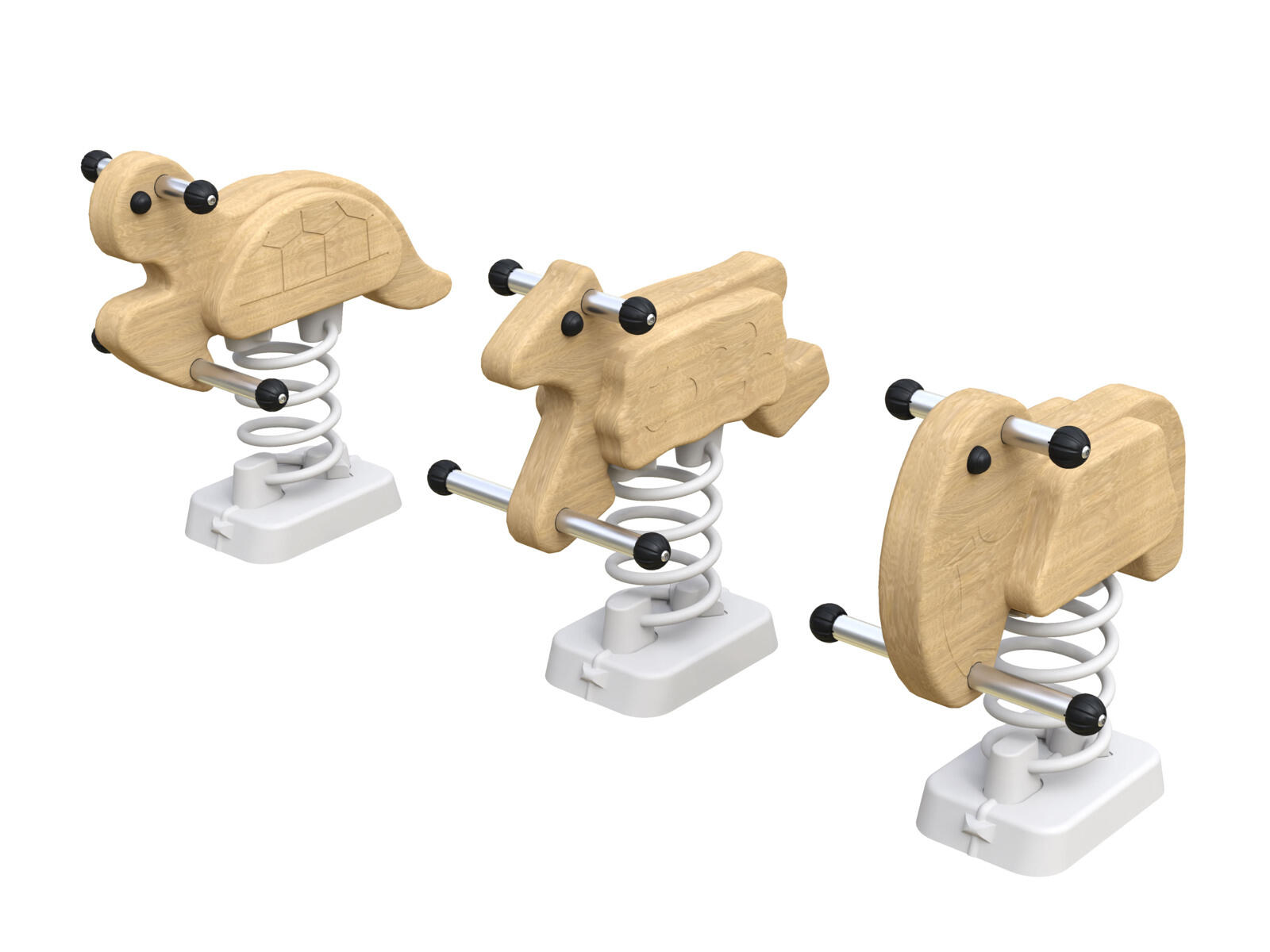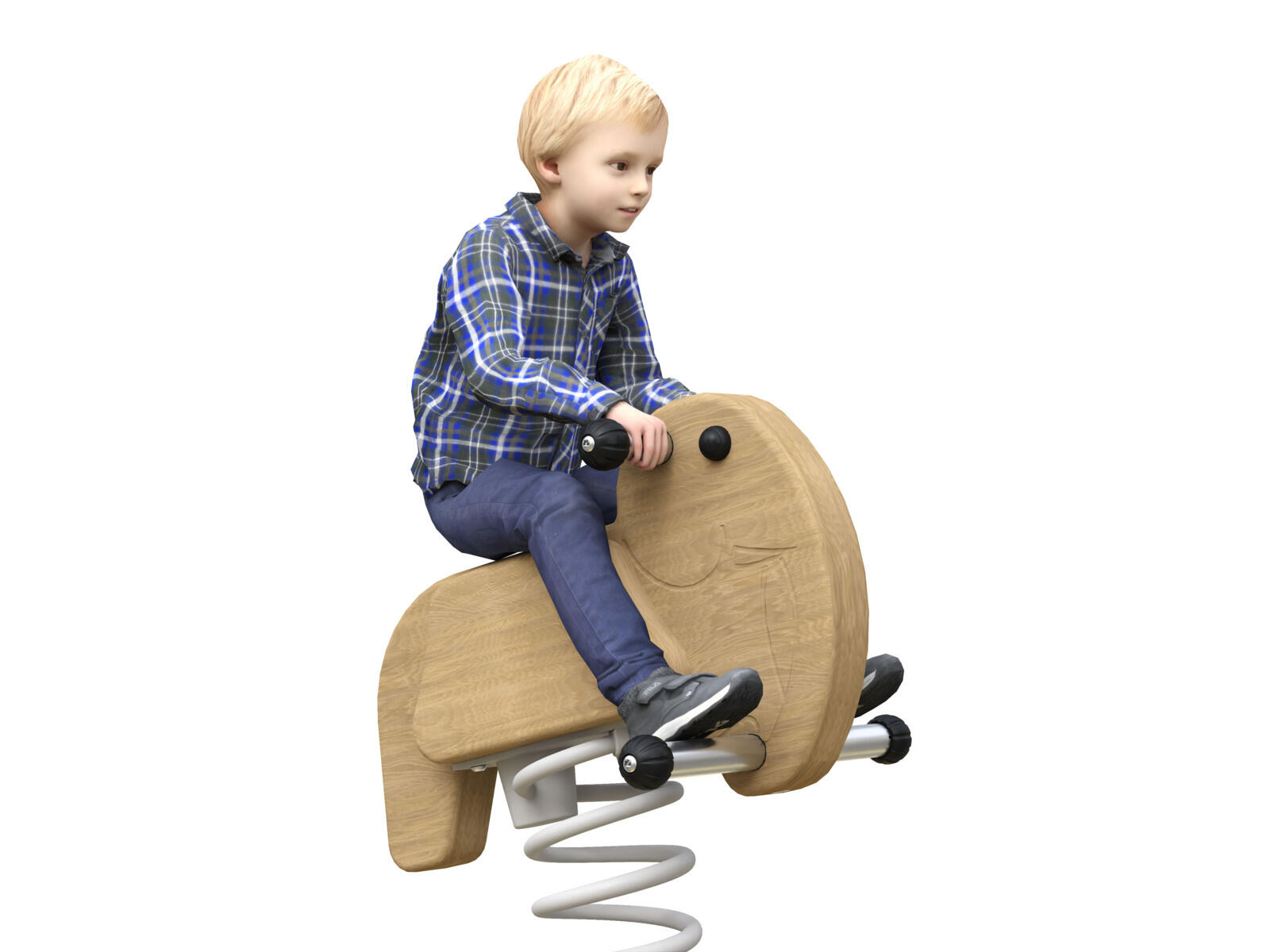 Den naturliga träestetiken ger ett varmt och inbjudande intryck i utemiljön. Fjädergungan har tydliga hand- och fotgrepp samt en bekväm sits. Genom den gungande rörelsen tränas balans, koordination och kroppsstyrka. Leverantörens artikelnummer SPR/EL