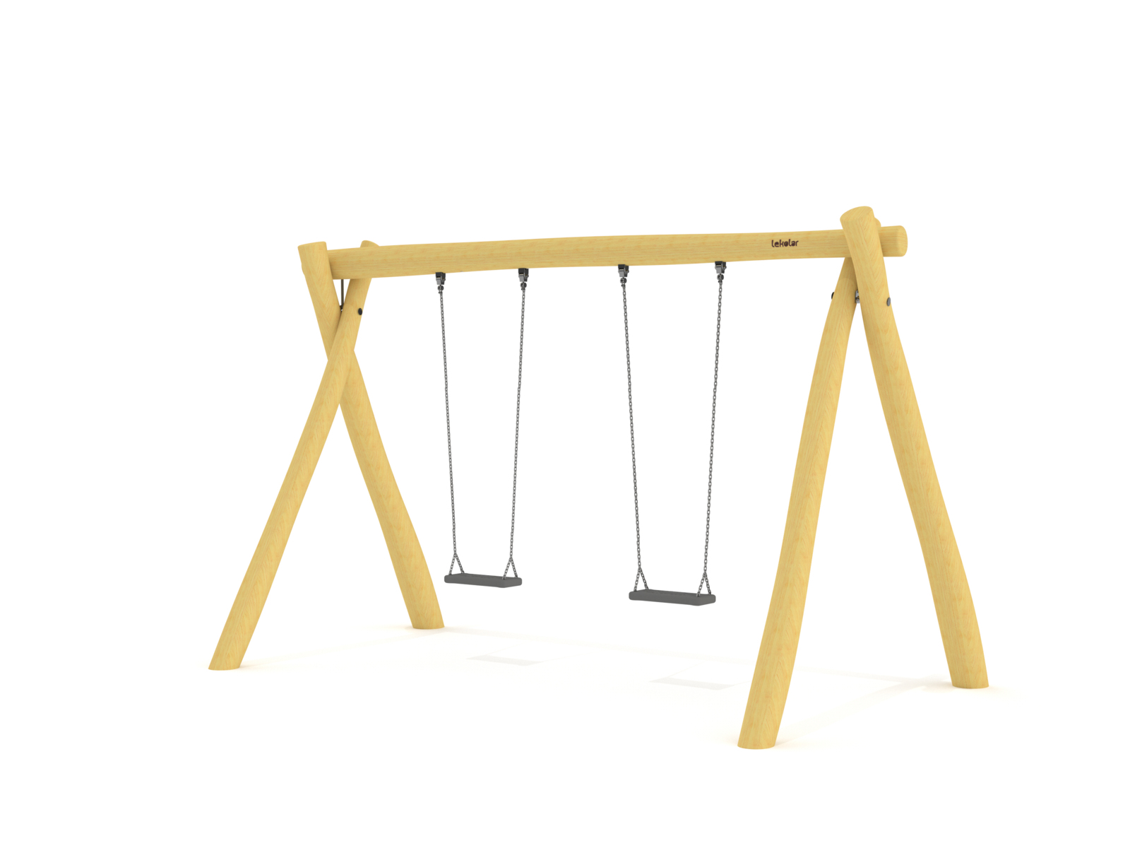 Med sitt naturliga intryck blir denna gunga ett självklart och roligt tillskott i utemiljön. Gungställningen är utrustad med två däckgungor som är tillverkade av PAH-fritt gummi och tillverkas enbart av nya däck. Gungandet stärker barnens balans och koordination och dessutom lär sig barnen att orientera sig och fokusera även under rörelse. Dessutom har gungrörelsen har även en lugnande och sensorisk stimulerande effekt. Tillverkad av FSC-certifierad Robinia, ett träslag som är känt för sin höga motståndskraft mot väderpåverkan. Robinia absorberar minimalt med vatten och utmärker sig genom sin extremt långa hållbarhet. Monteras enligt installationsmanual.