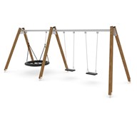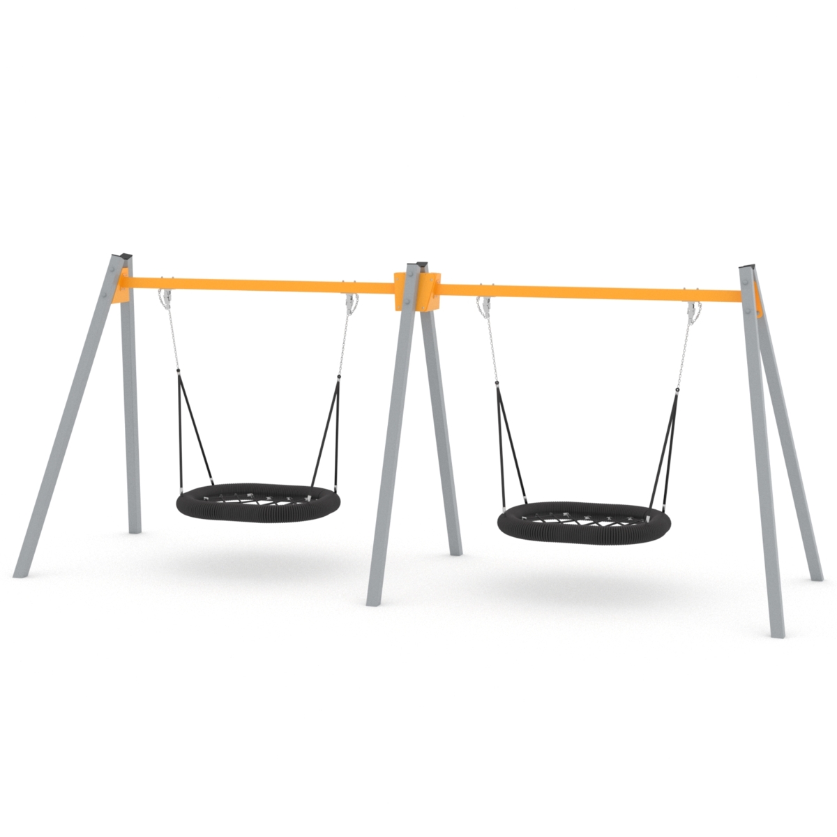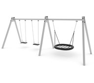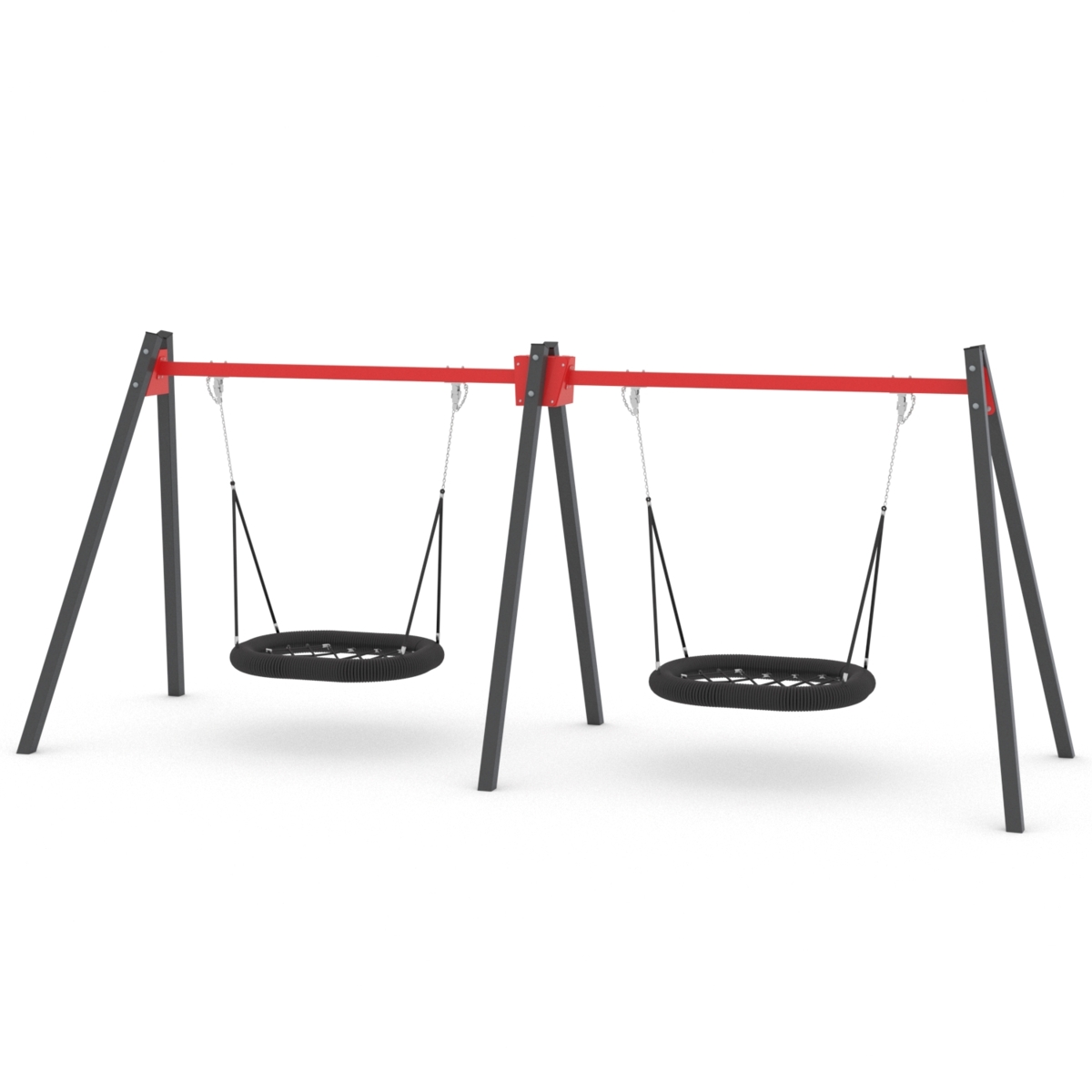 En extra hög klassisk A-gunga med den populära fågelbogungsitsen där flera barn kan gunga tillsammans. Gungandet stärker barnens balans och koordination och dessutom lär sig barnen att orientera sig och fokusera även under rörelse. Gungrörelsen har även en lugnande och sensorisk stimulerande effekt. Av galvaniserat och pulverlackerat stål. Vid installation ska alltid den medföljande manualen användas. Den senaste versionen finns att tillgå på begäran.