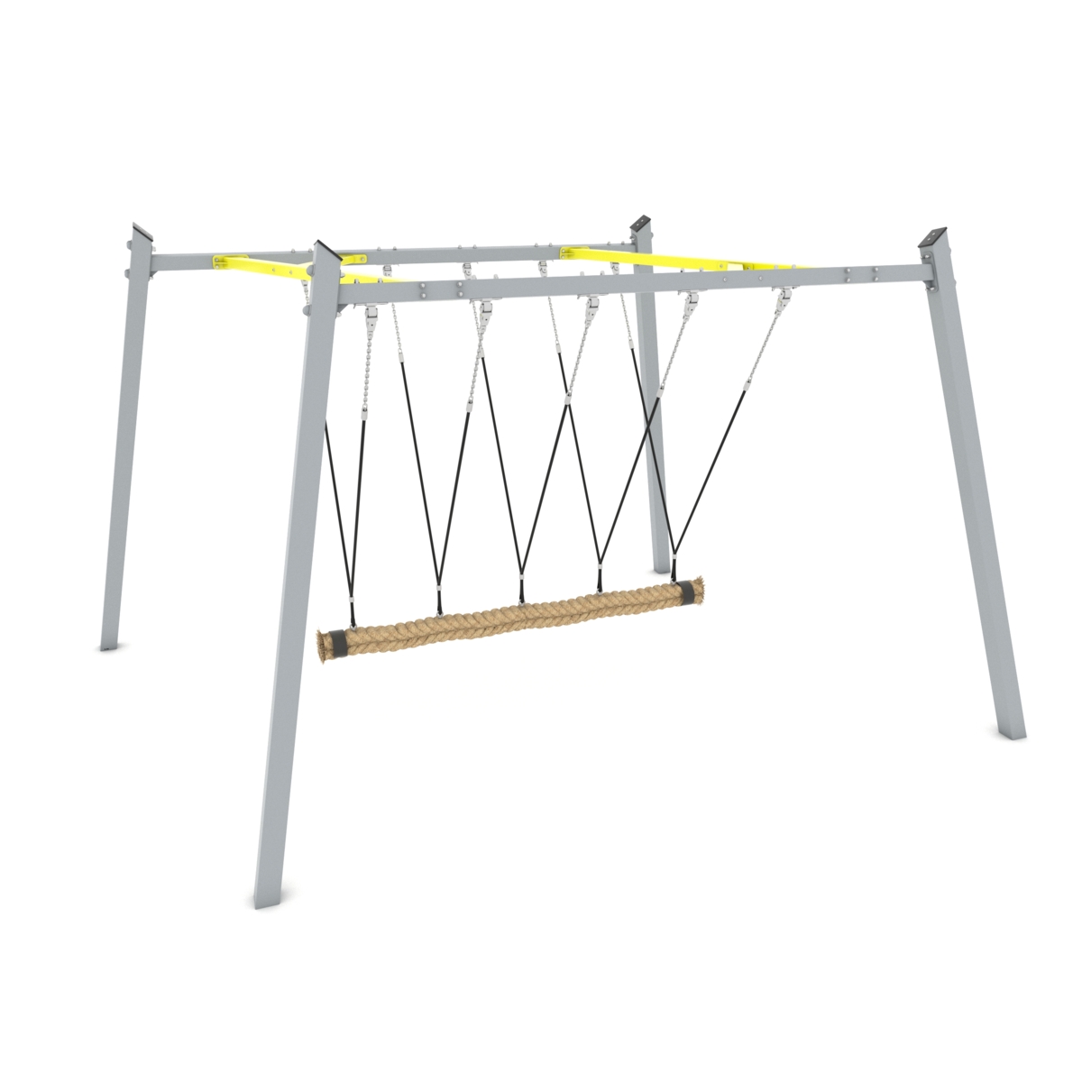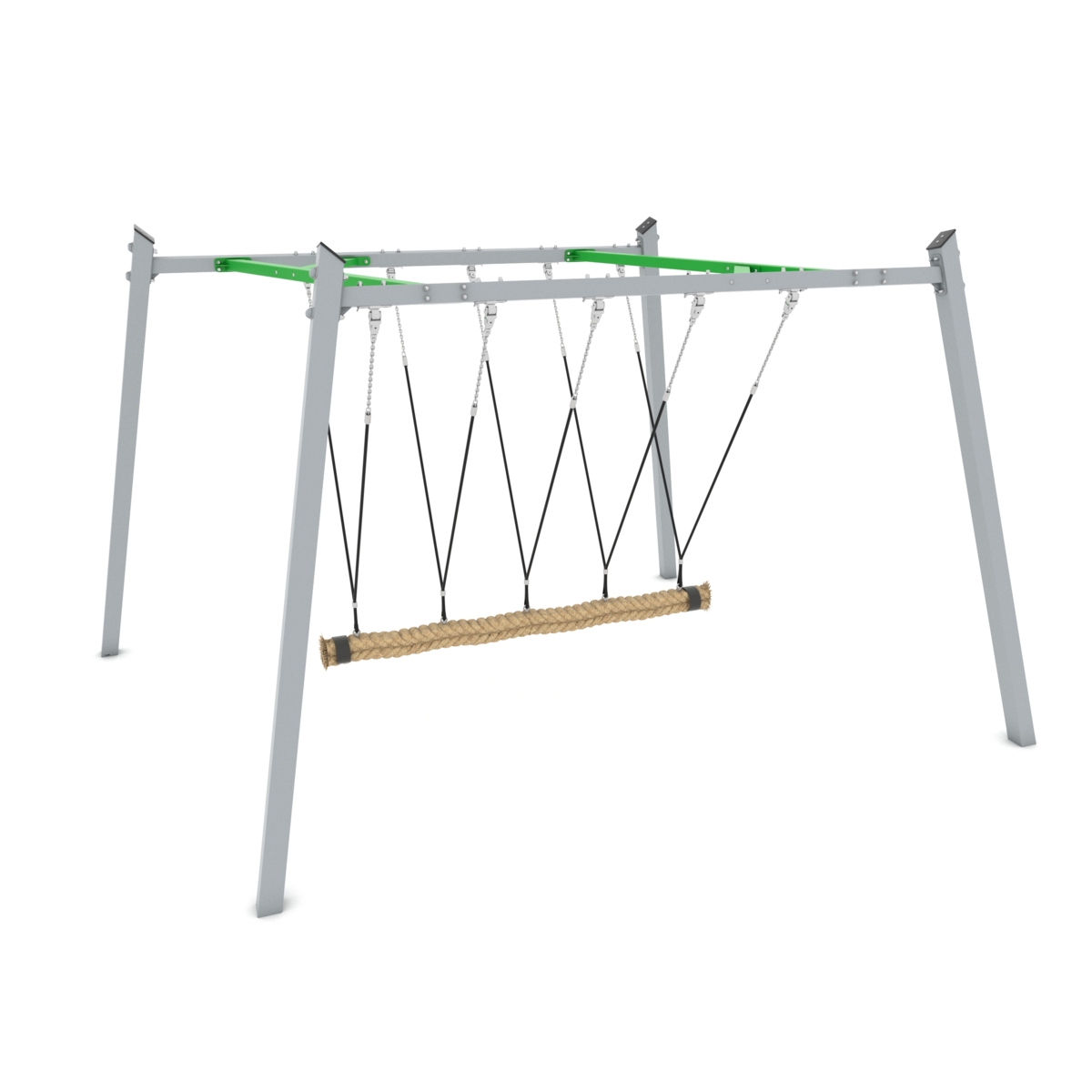 En extra hög klassisk A-gunga med den populära fågelbogungsitsen där flera barn kan gunga tillsammans. Gungandet stärker barnens balans och koordination och dessutom lär sig barnen att orientera sig och fokusera även under rörelse. Gungrörelsen har även en lugnande och sensorisk stimulerande effekt. Av galvaniserat och pulverlackerat stål. Vid installation ska alltid den medföljande manualen användas. Den senaste versionen finns att tillgå på begäran.