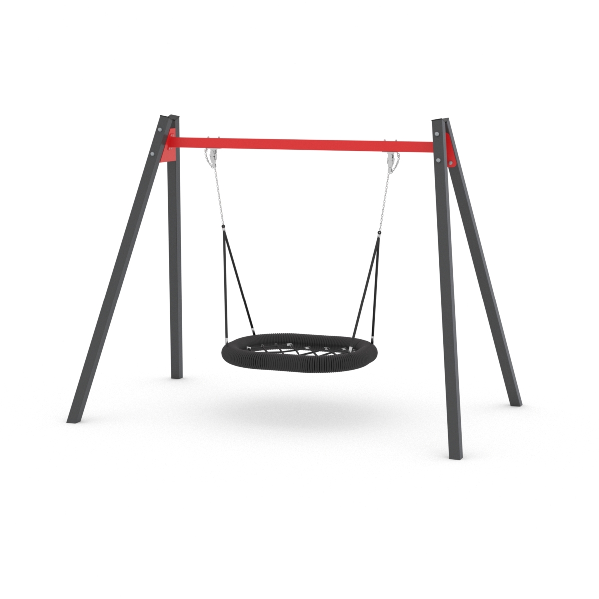 En extra hög klassisk A-gunga med den populära fågelbogungsitsen där flera barn kan gunga tillsammans. Gungandet stärker barnens balans och koordination och dessutom lär sig barnen att orientera sig och fokusera även under rörelse. Gungrörelsen har även en lugnande och sensorisk stimulerande effekt. Av galvaniserat och pulverlackerat stål. Vid installation ska alltid den medföljande manualen användas. Den senaste versionen finns att tillgå på begäran.
