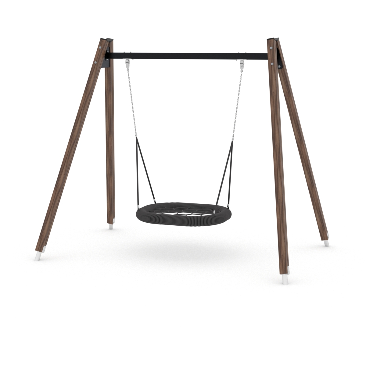 En extra hög klassisk A-gunga med den populära fågelbogungsitsen där flera barn kan gunga tillsammans. Gungandet stärker barnens balans och koordination och dessutom lär sig barnen att orientera sig och fokusera även under rörelse. Gungrörelsen har även en lugnande och sensorisk stimulerande effekt. Denna konstruktion är baserad på 100 % återvunnet material. Alla stolpar är tillverkade av återvunnen textil. Några av många fördelar med detta material är att det inte rostar, inte absorberar vatten, är UV-resistent och ändå är lika hållbart som stål. Kärnan på alla paneler är av återvunna rep och fiskenät. Monteras enligt installationsmanual. Vid installation ska alltid den medföljande manualen användas. Den senaste versionen finns att tillgå på begäran.
