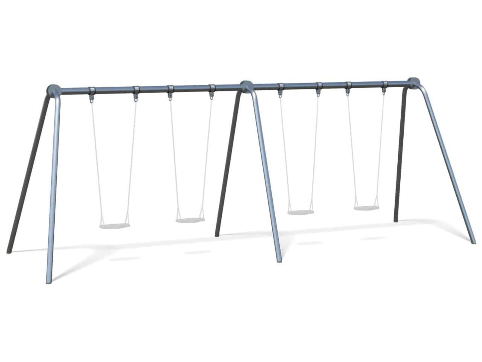 En modern och stilren gungställning med plats för 4 gungor. Passar perfekt för förskolor skolor och lekplatser där flera barn vill gunga samtidigt. Stålkonstruktion som kräver minimalt underhåll