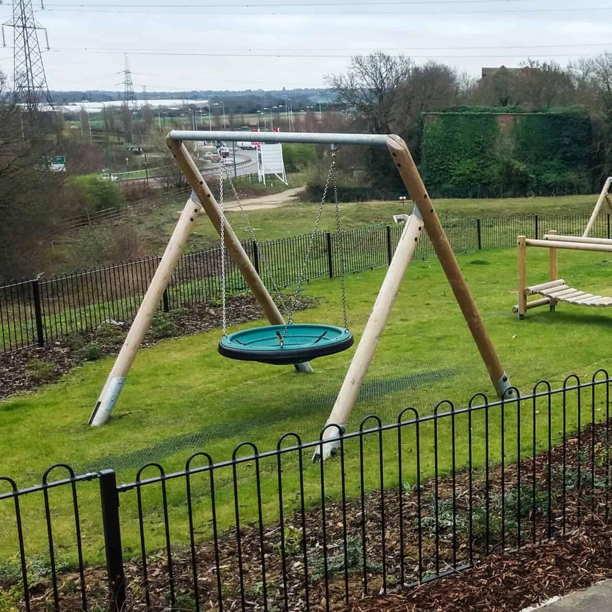 En populär gunga som uppmuntrar barn att leka tillsammans och samarbeta för att få fart. Den stora sitsen ger plats för flera barn samtidigt och skapar en gemensam lekupplevelse fylld av rörelse, fart och glädje. Gungan främjar balans, koordination och socialt samspel. Det robusta markfästet i stål håller stolparna av limträ ovan mark och skyddar mot fukt och slitage. Höjd på ställning 2,6 m.