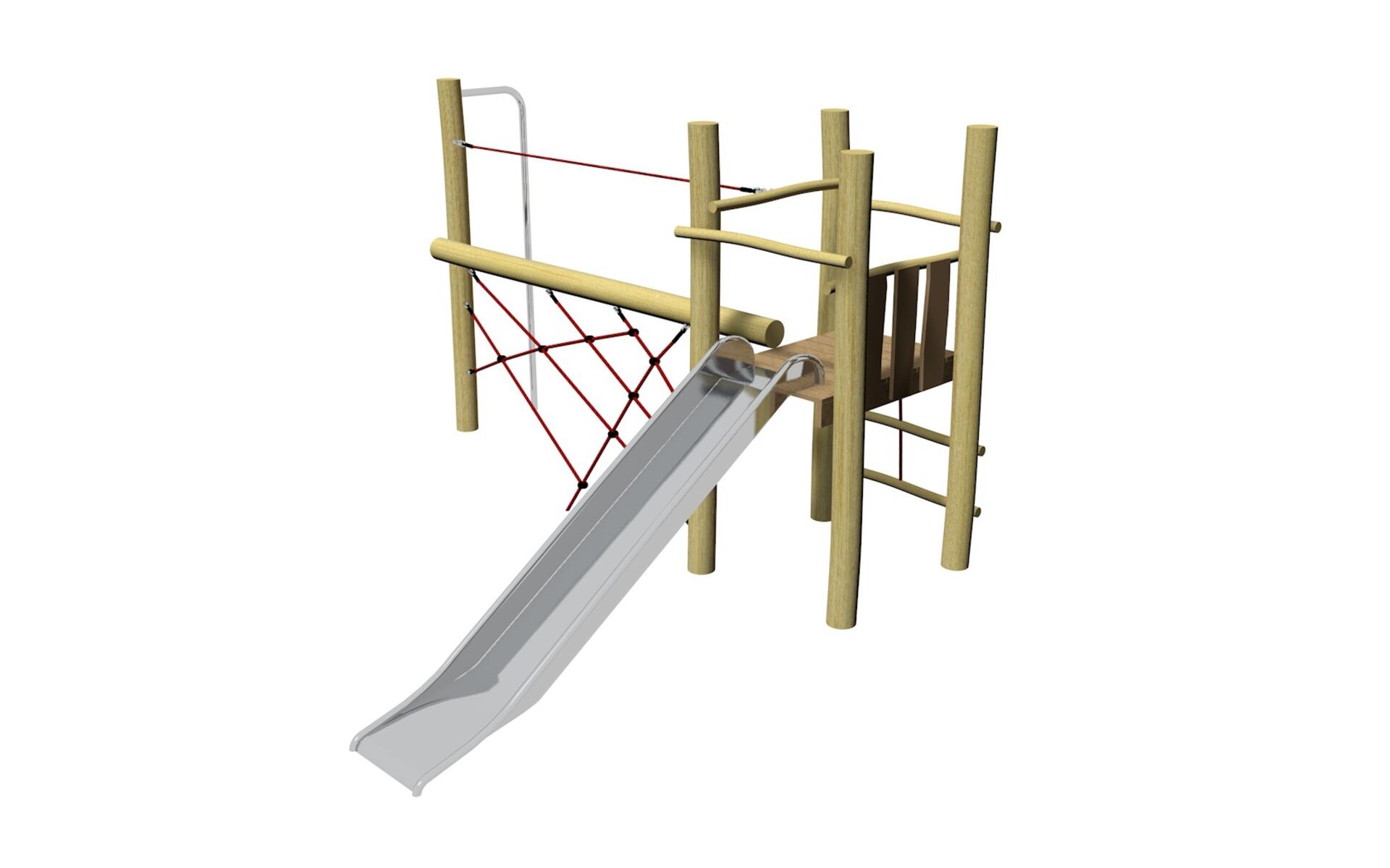 Den fristående rutschkanan är ett perfekt komplement till lekplatsen och blir snabbt en favorit i utemiljön. Barnen älskar att klättra upp och susa ner, om och om igen. Tillverkad av rostfritt stål med plattform och steg av obehandlad Robinia.