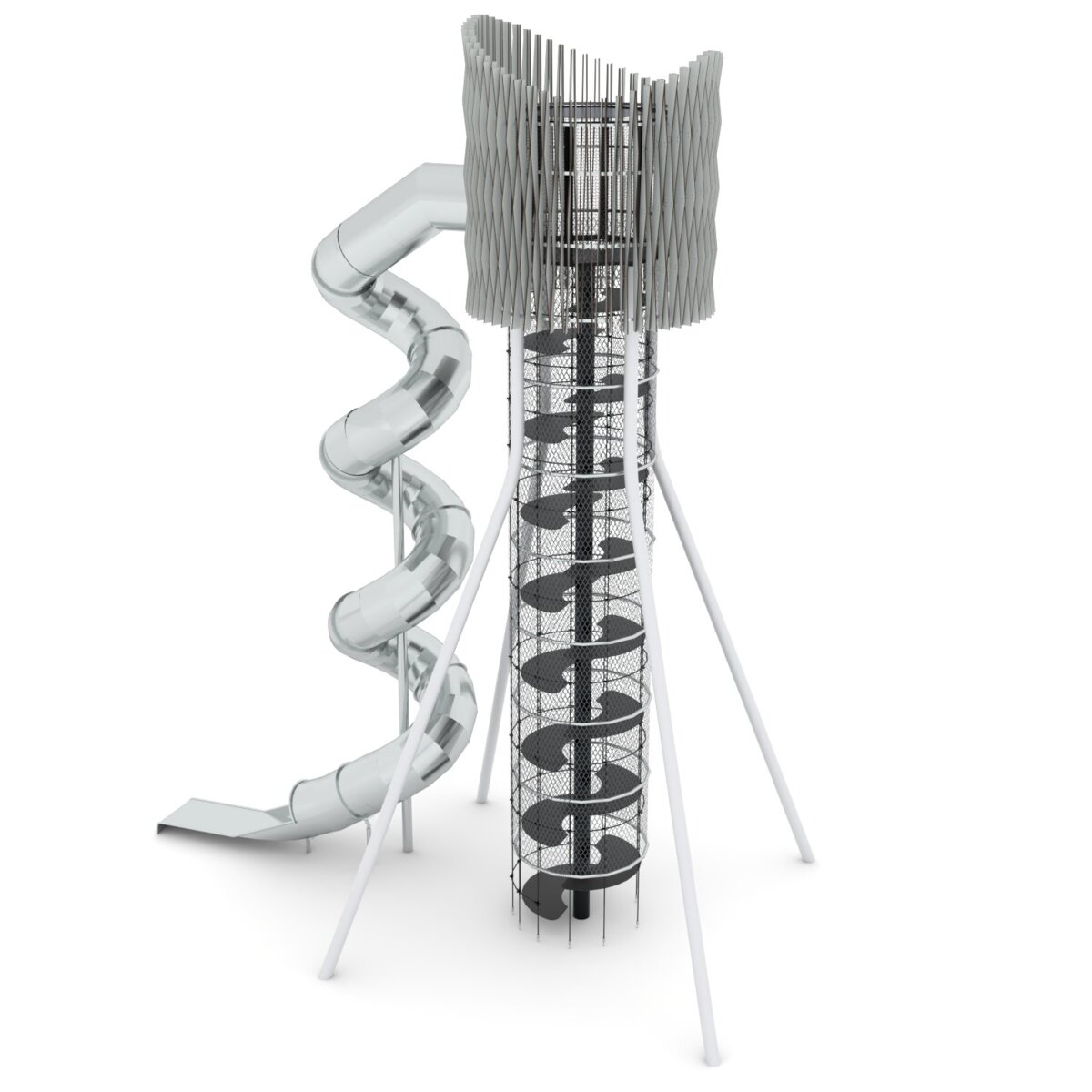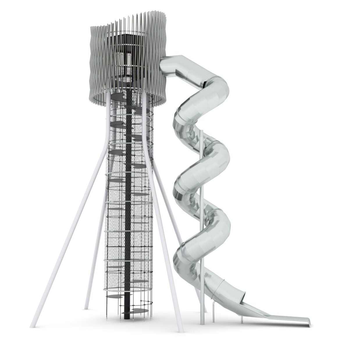 Att klättra högt i torn som nästan når upp till himlen är både spännande och utmanande. Genom att klättra utvecklar barnen sin motorik, koordination, balans och kroppsmedvetenhet. MAXX är ett modulärt system av högsta kvalitet. Denna modell består av ett högt torn, klätternät, spiraltrappsteg och en lång spiral tunnelrutschbana. Modulerna är tillverkade av varmgalvaniserat stål. Vid installation ska alltid den medföljande manualen användas. Den senaste versionen finns att tillgå på begäran.