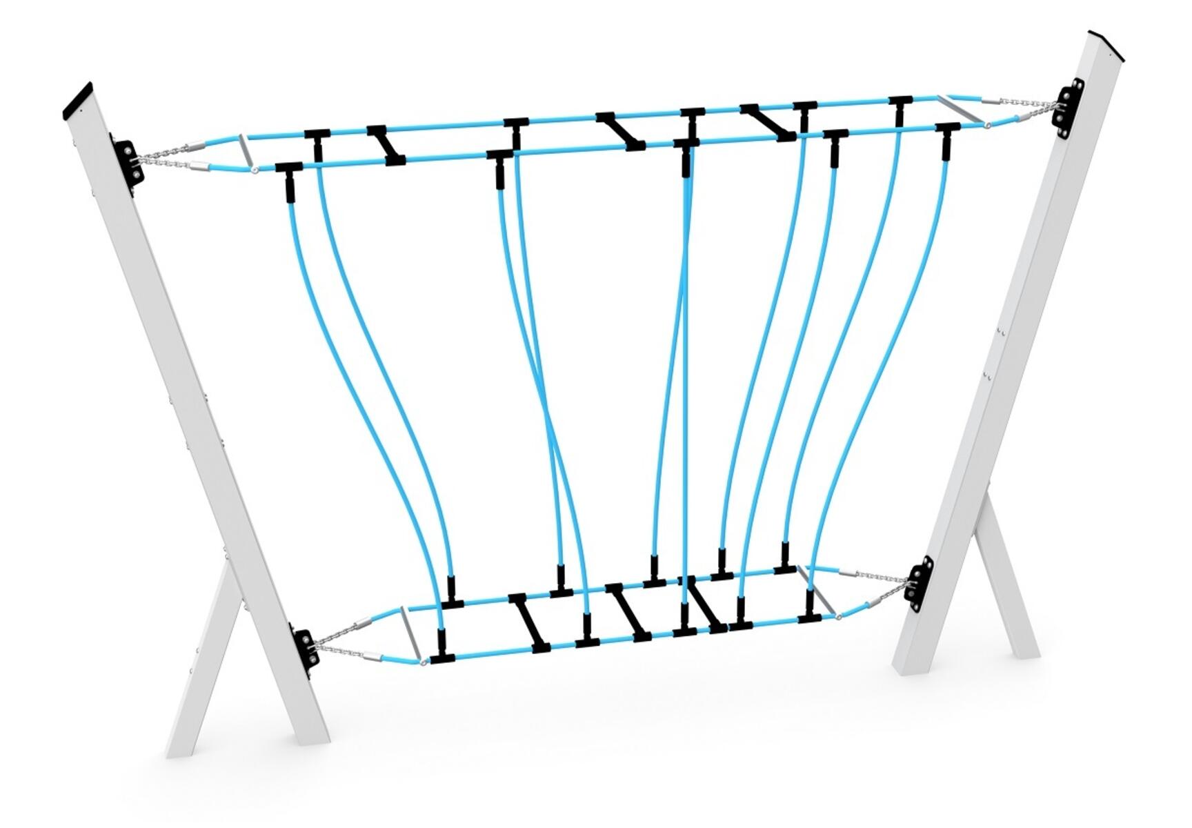 Klätterställning för balansträning i galvaniserat stål. Rep i rostfritt stål klätt med polypropylen. Alla potentiellt vassa ytor är täckta med gummi eller plastplugg för att minimera risken för skador. Vid installation ska alltid den medföljande manualen användas. Den senaste versionen finns att tillgå på begäran. Leverantörens artikelnummer Nettix 1605 Inkluderar markförankring K23.