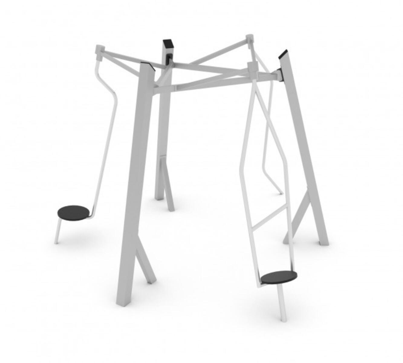 Multilek med torn och tak, två rutschkanor, bro och trappa med staket, klätterpanel, utkiksplats, lekdisk, hängsits, båtfönster, geometriska lekstänger och lekpaneler. Vid installation ska alltid den medföljande manualen användas. Den senaste versionen finns att tillgå på begäran. Leverantörens artikelnummer STEEL+ 1709