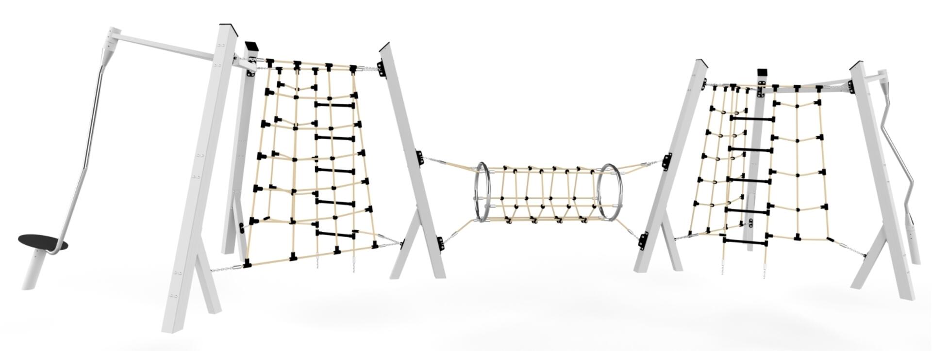 Klätterställning för balansträning i galvaniserat stål. Rep i rostfritt stål klätt med polypropylen. Alla potentiellt vassa ytor är täckta med gummi eller plastplugg för att minimera risken för skador. Vid installation ska alltid den medföljande manualen användas. Den senaste versionen finns att tillgå på begäran. Leverantörens artikelnummer Nettix 1610