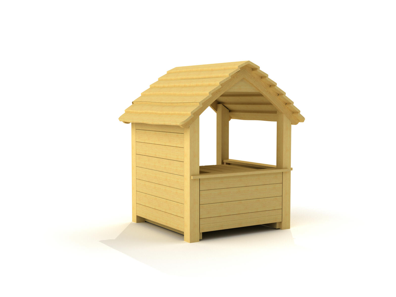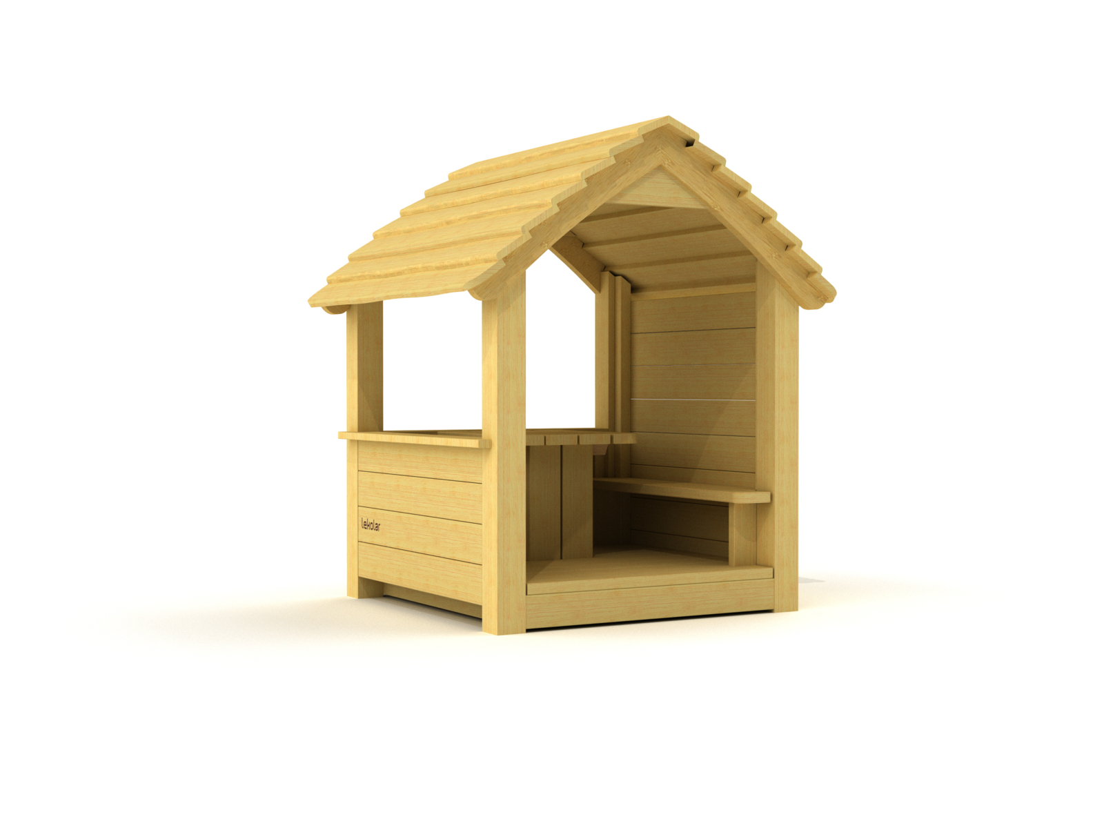 Skapa en inspirerande och lärorik utemiljö på förskolan med detta mångsidiga öppna lekhus. Det lilla huset har en öppen design för olika typer av utforskande, rollekar som affär, restaurang eller café som ger stimulans för barnens fantasi och kreativitet. Lekhuset är utrustat med en smal disk, 2 stora fönster och ett bakstycke med möjlighet att hänga upp saker på. Med en sida som är helt öppen kan både barnen och pedagogerna att ha överblick över vad som händer på gården. Av FSC-certifierad furu som är ytbehandlad med en vattenbaserad lack. Lösning för förankring säljs separat, för väggförankring behövs 2 st av artnr 151133, eller för markförankring behövs 4 st av 161297. Levereras omonterat.
