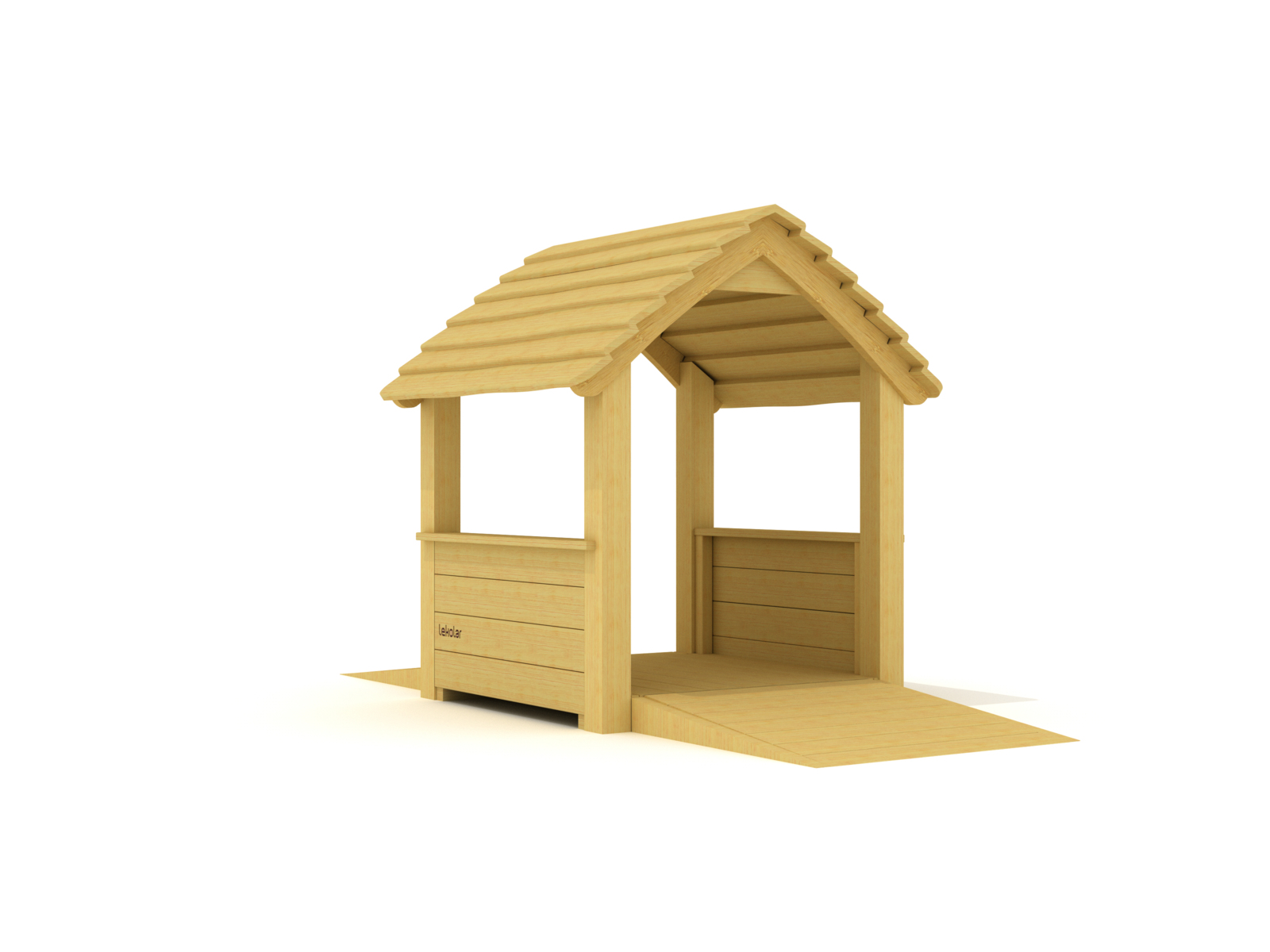 Skapa en inspirerande och lärorik utemiljö på förskolan med detta mångsidiga öppna lekhus. Det lilla huset har en öppen design för olika typer av utforskande, rollekar som affär, restaurang eller café som ger stimulans för barnens fantasi och kreativitet. Lekhuset är utrustat med en smal disk, 2 stora fönster och ett bakstycke med möjlighet att hänga upp saker på. Med en sida som är helt öppen kan både barnen och pedagogerna att ha överblick över vad som händer på gården. Av FSC-certifierad furu som är ytbehandlad med en vattenbaserad lack. Lösning för förankring säljs separat, för väggförankring behövs 2 st av artnr 151133, eller för markförankring behövs 4 st av 161297. Levereras omonterat.