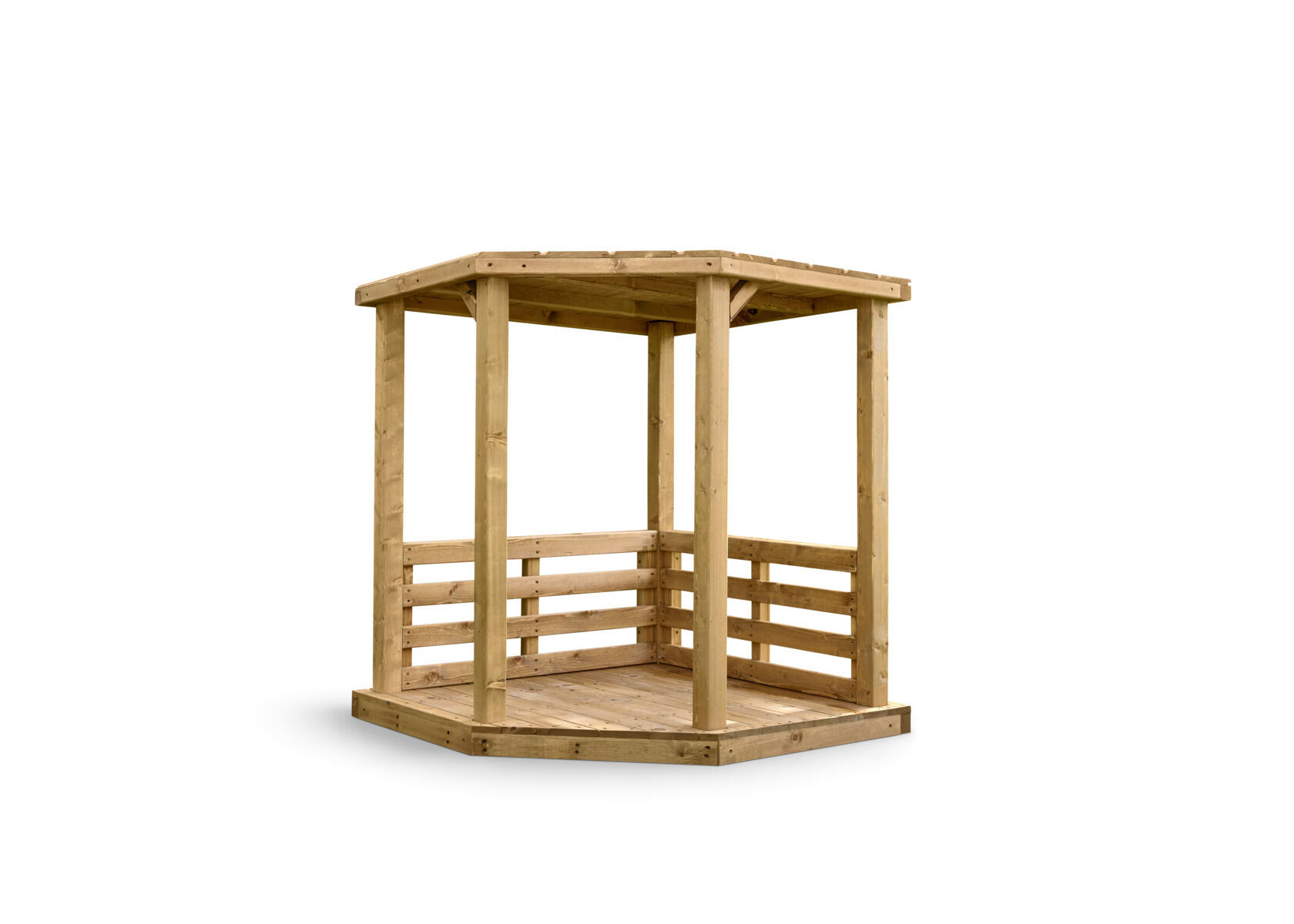 Scenens öppna design uppmuntrar till drama, framträdande och fantasifull rollek i utemiljön. Perfekt för små barn som vill uttrycka, utforska eller skapa. Med enkla förändringar kan man skapa flera olika användningsmöjligheter och förvandla till ett mysigt krypin, en teaterscen med gardiner eller en plats för rollek. Det sluttande taket ger skydd vid både sol och regn. Tillverkad av FSC certifierad furu som är ytbehandlad med en oljebaserad lack. För markförankring behövs 4 st av 151134, eller 151133 för ytmontering. Levereras omonterad.