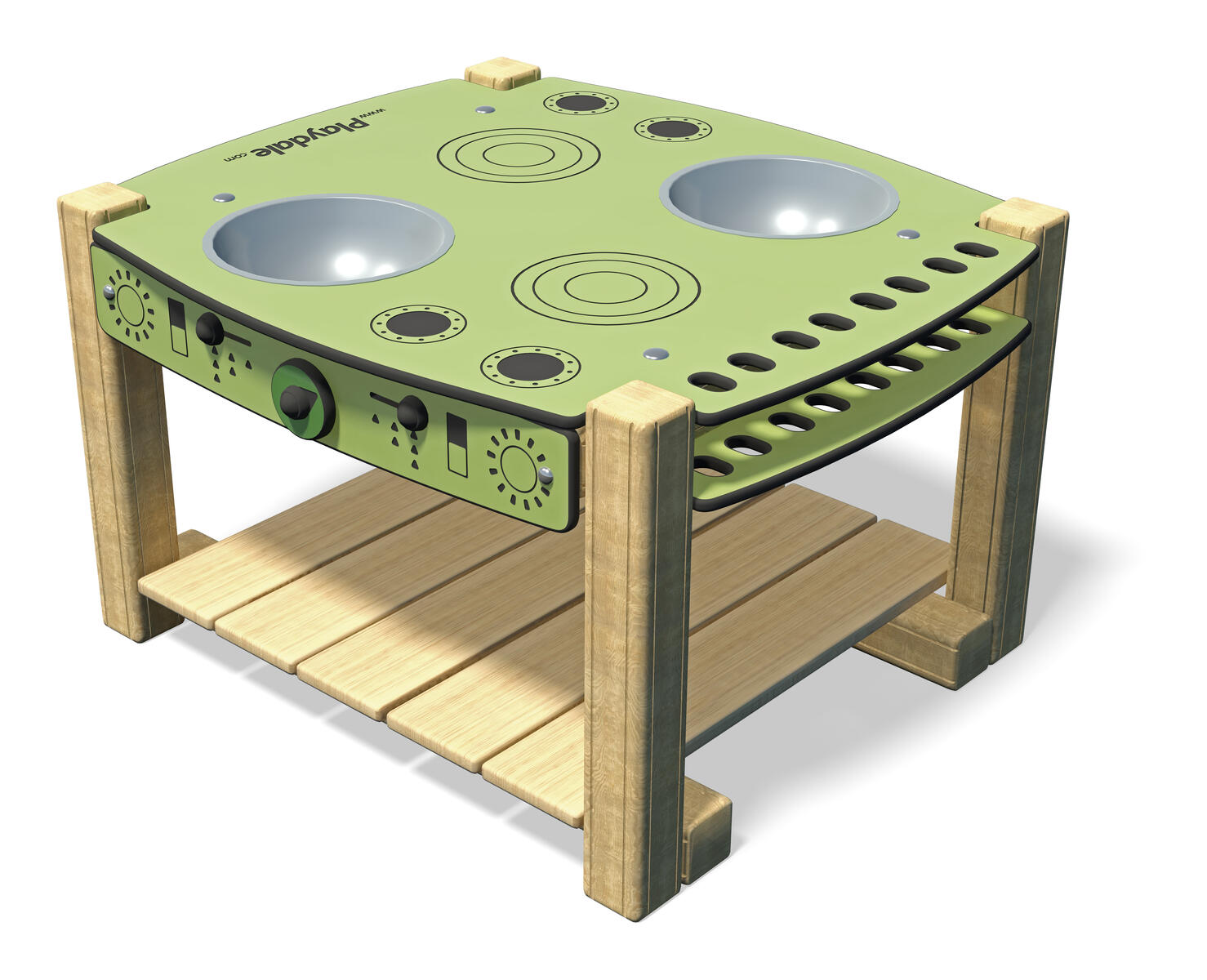 Ett kök som uppmuntrar till kladdig och kletig matlagning. Detta bord med nedsänkta backar av livsmedelsgodkänd PP är också perfekt som planteringsbänk, arbetsbord, labbstation, snickarbänk med mera.