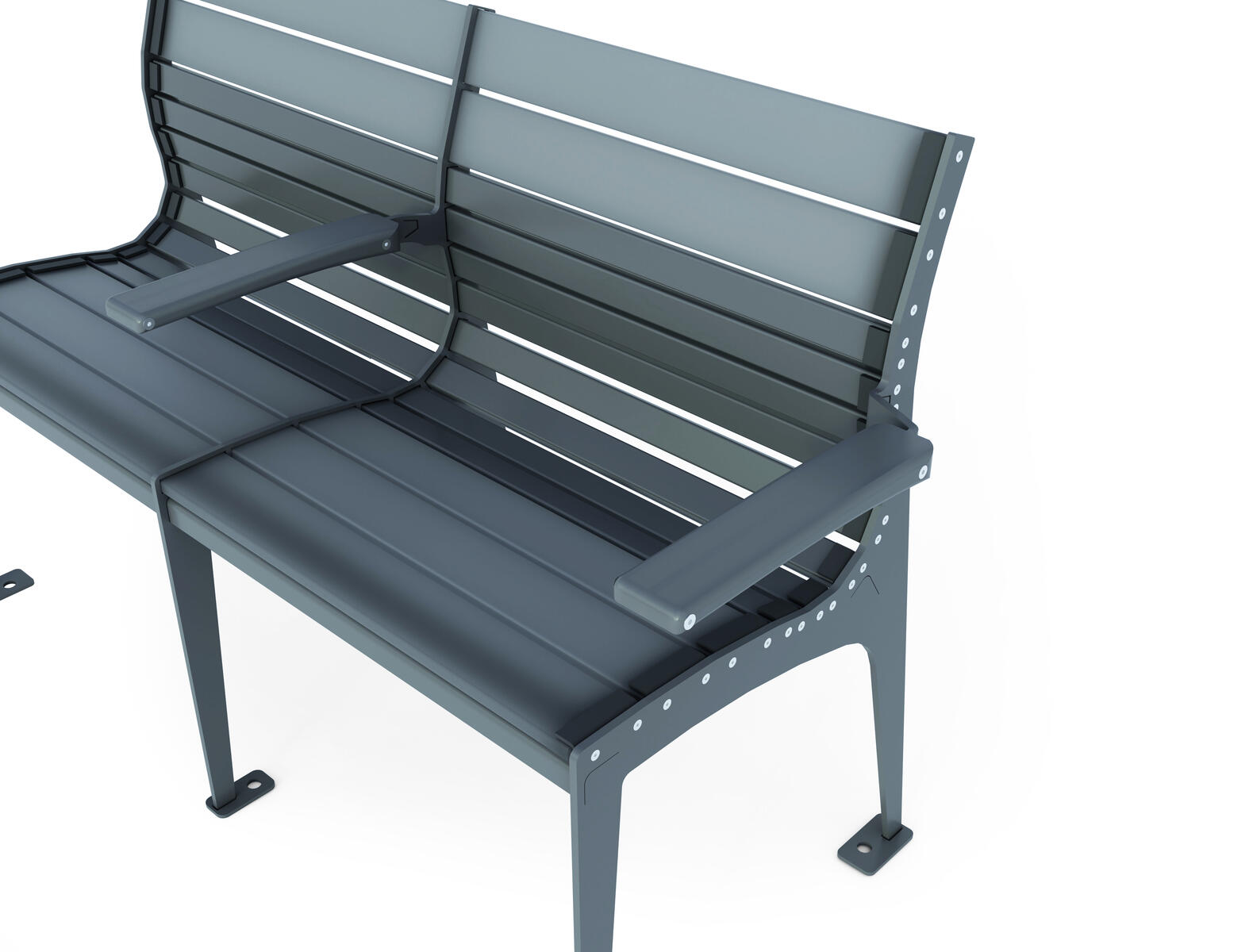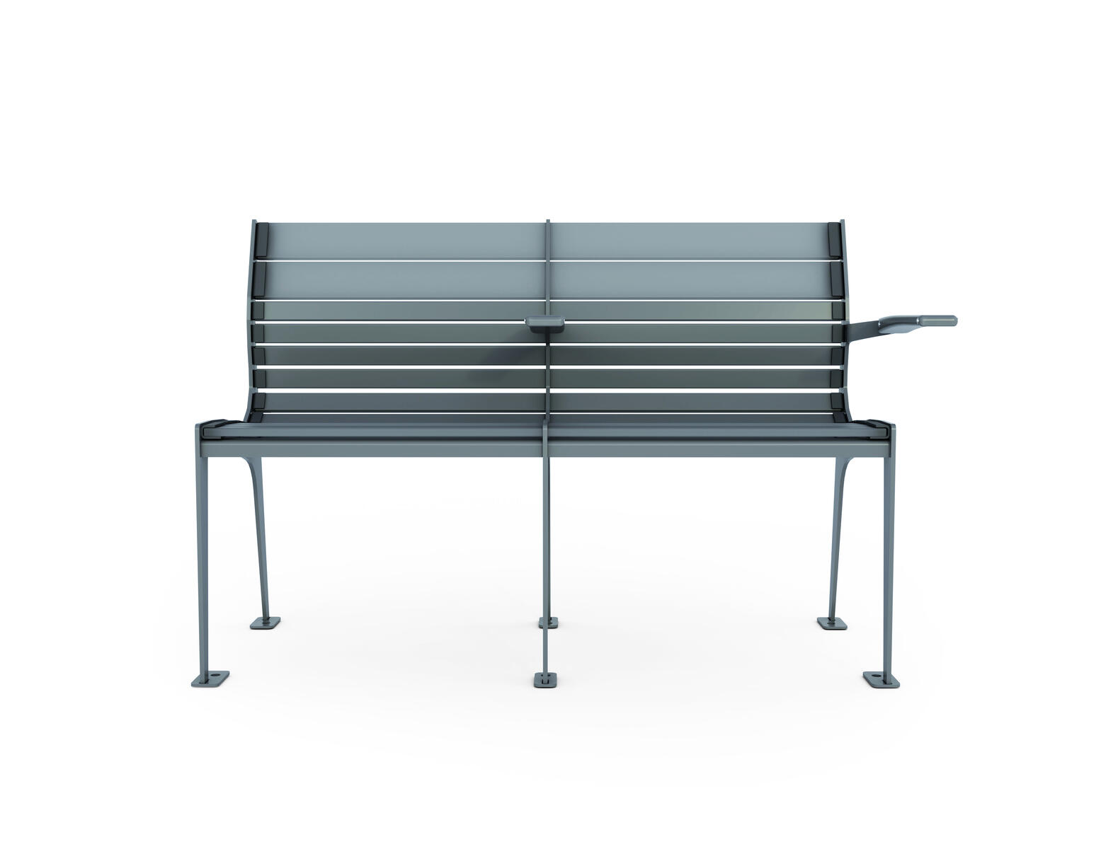 En tillgänglighetsanpassad och bekväm bänk med mycket bra support för rygg, då bänken följer dess svank och konturer. Bänken är speciellt anpassad i höjd för att en rullstolsburen person enkelt ska kunna förflytta sig från rullstolen till bänken och tvärtom. Bänken har därför inget armstöd på den ena sidan och det andra armstödet är lätt att greppa och har halkskydd. Många barn vill vara med i ett socialt sammanhang, utan att aktivt delta i leken och bänken kan då fylla detta syfte. Färdiga betongfundament medföljer. Monteras enligt installationsmanual.