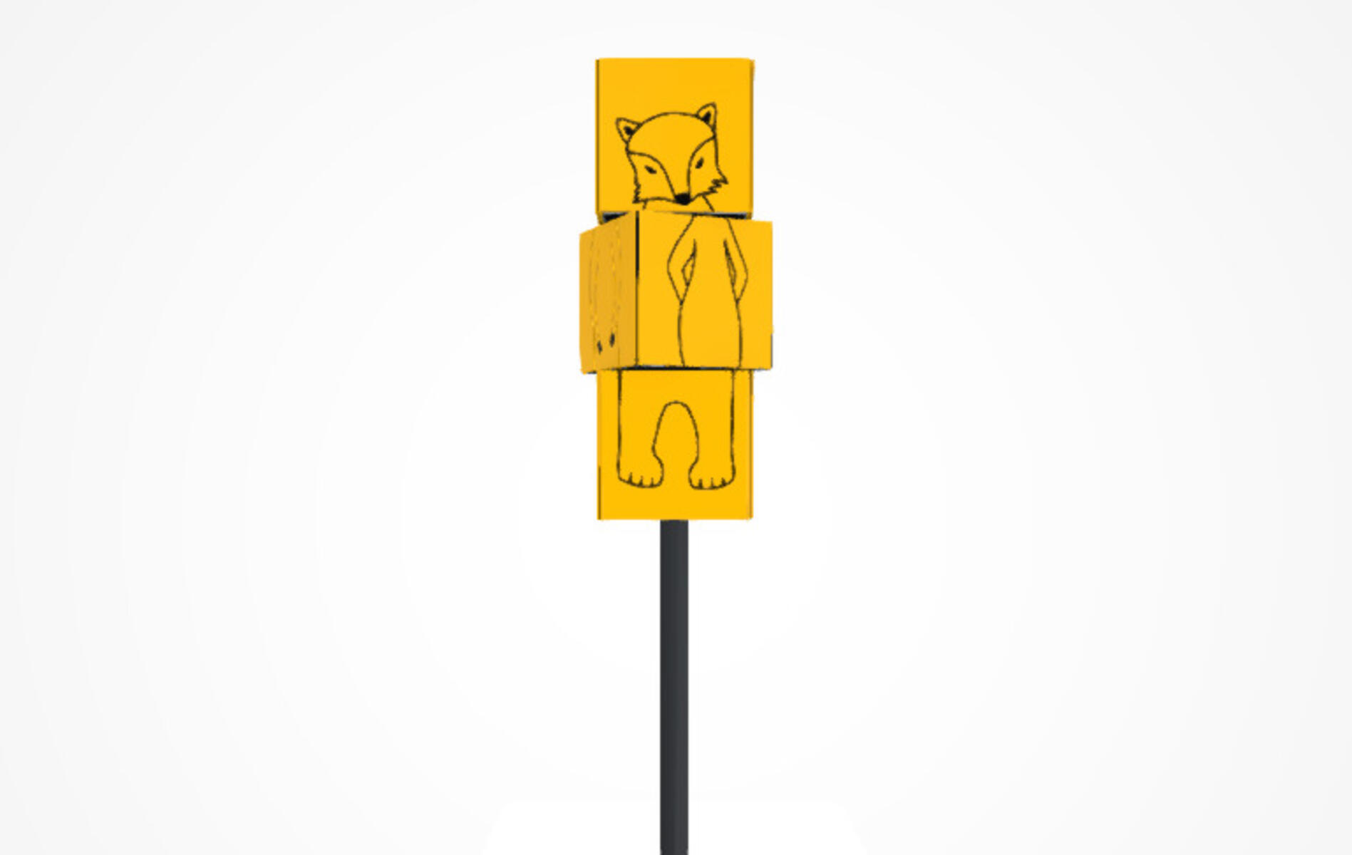 En tillgänglighetsanpassad panel med grafik på olika djur som är uppdelat på tre kuber. Mixa och matcha djuren, eller skapa nya roliga konstellationer av djur. Panelen kan användas av alla och är höjdmässigt även anpassad för en rullstolsburen person. Eftersom grafiken är nedsänkt är denna panel extra lämplig för personer med synskador, då man kan följa grafiken med fingrarna. Stålkonstruktion. Färdigt betongfundament medföljer. Monteras enligt installationsmanual.