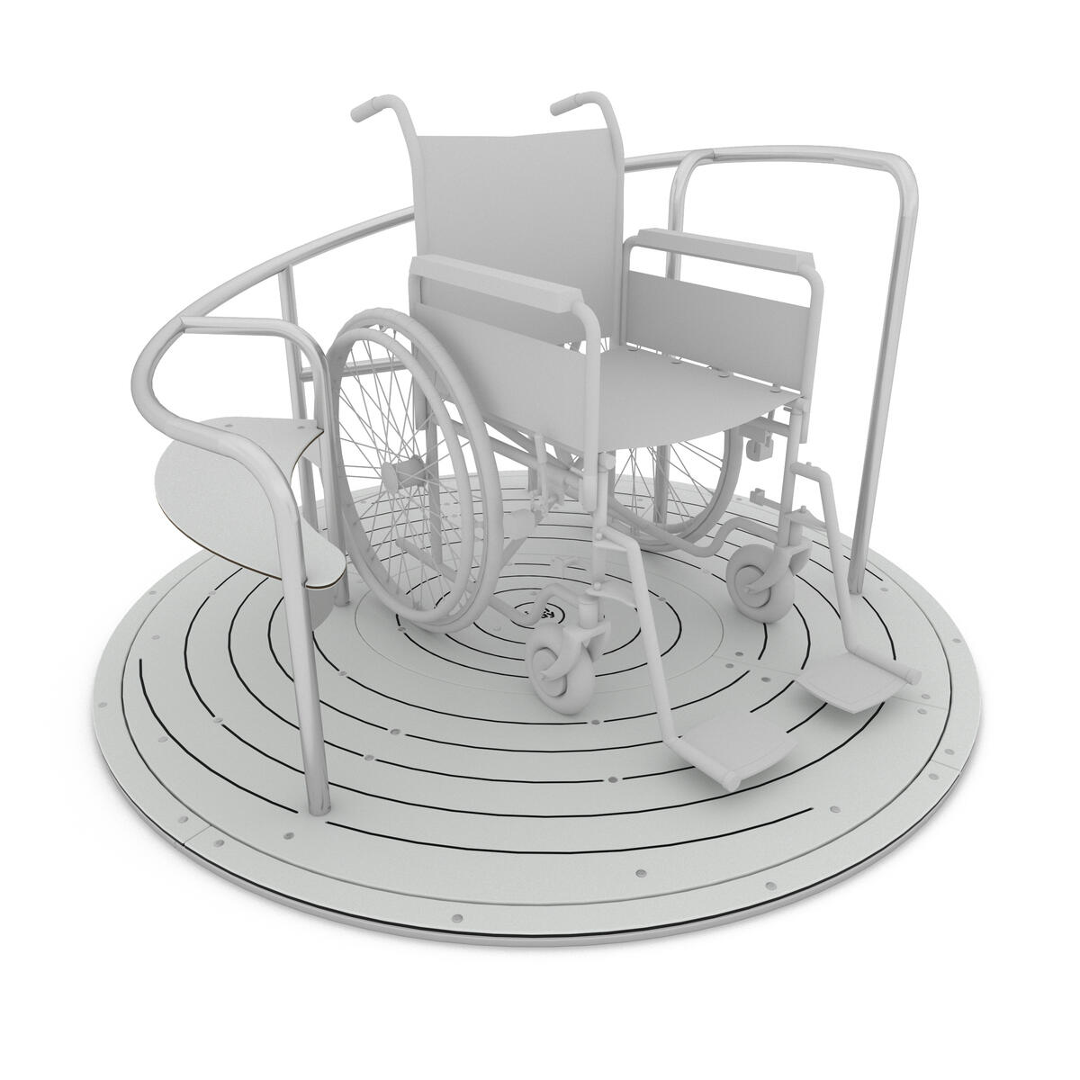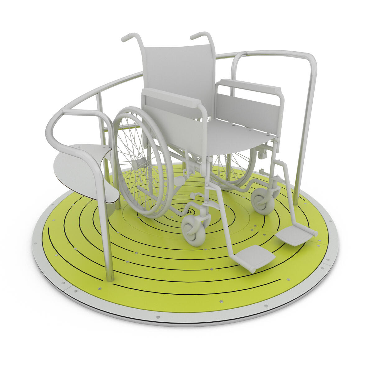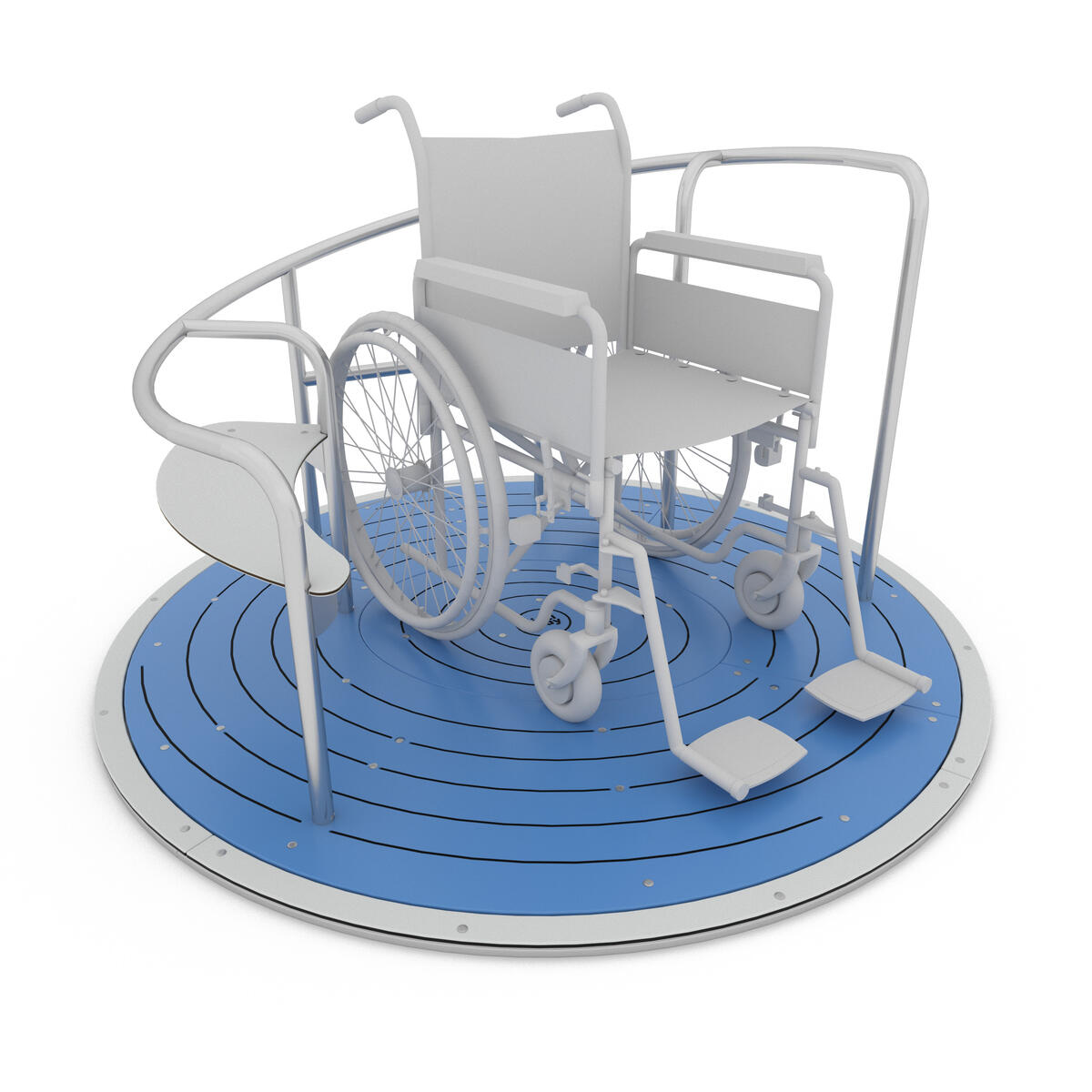 Karusell med plats för rullstol. Se produktblad för materialspecifikation. Vid installation ska alltid den medföljande manualen användas. Den senaste versionen finns att tillgå på begäran.